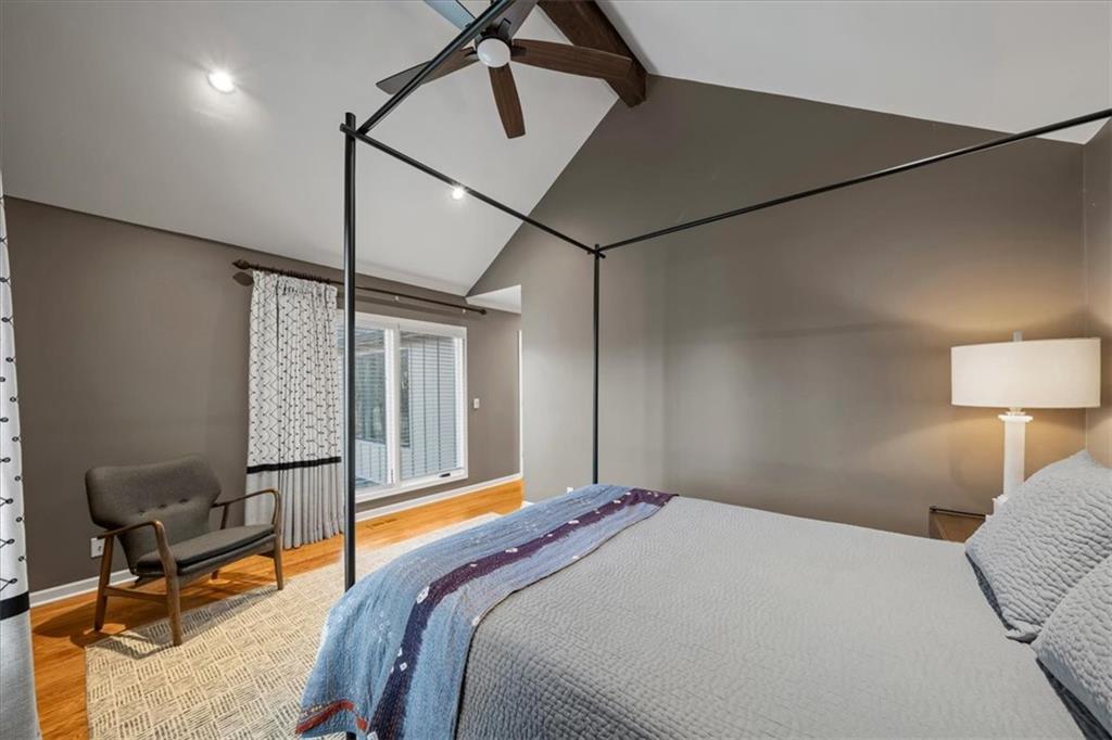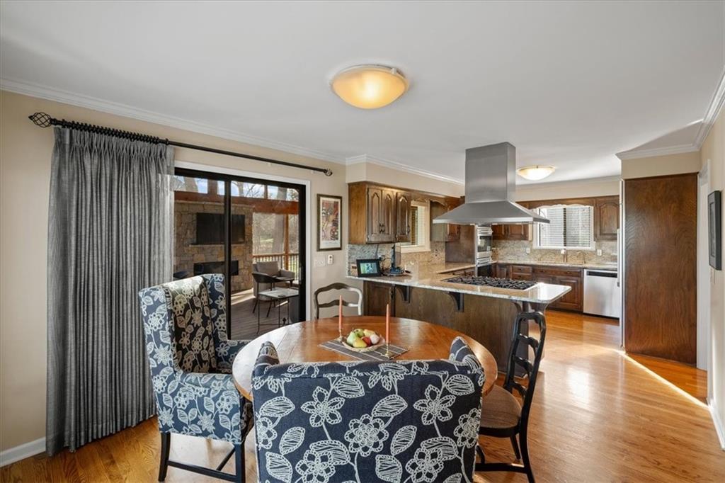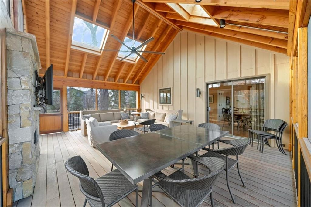 Incredible opportunity inside the secured gates of Lake Quivira -Updated throughout – Main level offers a spacious Great Room with a striking stone wall and gas fireplace, vaulted ceiling & wood flooring. Formal dining room with wood floors adjoins the spacious breakfast room & well-appointed kitchen featuring granite countertops, double oven, 6-burner gas cooktop, stainless steel appliances, pantry & newer Dacor refrigerator. Additional main-level amenities include laundry room with built-ins & sink and a convenient half bath off the kitchen. Enjoy the fantastic 18’x25’screened porch with vaulted ceiling, fan, fireplace and outdoor TV. Primary suite includes a generously sized bedroom, updated bath & his-&-hers closets. Three ADDITIONAL main-level bedrooms feature wood floors & ceiling fans. The hall bathroom has been updated with ceramic tile, a new shower/tub, & granite countertop. Lower level features a cozy family room with stone fireplace, built-in bookshelves and cabinetry & a dedicated TV area. Two lower-level bedrooms & a full bath complete this space; the bath has been updated with a new shower & granite countertop. Great wooded lot with front and back patio areas. (Stairwell & dining room light fixtures do not convey with the home). Private dock site # 269 with nearly new steel-framed floating dock. LQ is a private, 18-hole golf course & lake community with 24/7 gated security & many amenities to enjoy including: 220 acre private lake for boating, skiing, fishing, kayaking, sailing & swimming. Additional amenities: extensive Nature Trails system, Equestrian facilities, private, full service clubhouse, Community Center with workout facilities, lap pool, indoor & outdoor tennis and pickleball courts, exercise classes and more. One time $40,000 required membership fee and monthly HOA. (visit LakeQuivira.org for more information) MANY clubs to join, kids summer rec programs….indoor & outdoor fun & activities for the entire family & people of all ages.