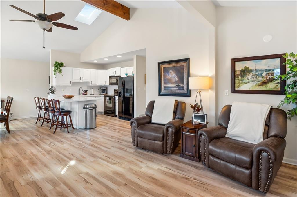 Lake Viking rare find with a boat slip at the Yacht Club. This property is situated on 1.3 acres near the South Entrance and offers a private, wooded setting with abundant wildlife and a treehouse-like feel. The home features 3 bedrooms and 3 bathrooms with numerous recent updates, including a new roof, new flooring, shiplap accent walls and ceilings, and fresh paint throughout. The open-concept kitchen includes freshly painted cabinets, quartz countertops, and comes fully equipped with appliances, including the washer and dryer. The primary bedroom offers a shower and a large window with peaceful views of the wooded lot. For those seeking a quiet retreat, the large covered and screened-in porch provides an ideal space to relax and enjoy the natural surroundings. The unfinished basement includes a pellet stove and offers excellent potential for a workshop or future finished living space. Additional features include a one-car garage. The sellers are open to offers on furnishings, and the boat is available for purchase separately.