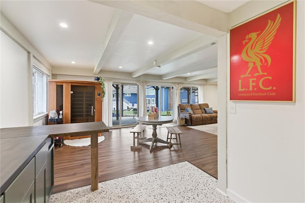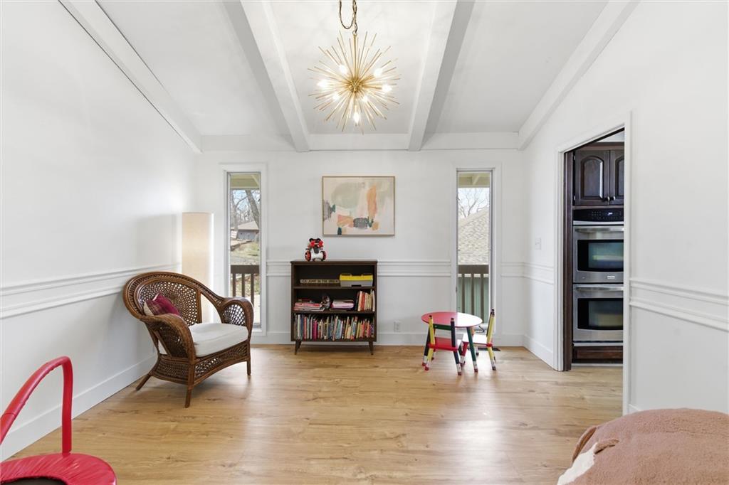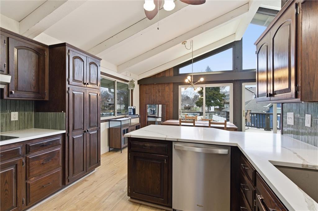 Mid-century modern AND lake front! Tucked back in a quiet cove yet perfectly positioned for long, open views down the main channel, this updated mid-century modern lakefront home delivers the best of Lake Tapawingo living. The setting is peaceful, the views are expansive, and the water access is exceptional — complete with your own dock and an impressive seawall featuring wide concrete steps that make swimming and lake days effortless. Inside, you’ll find over 3,000 square feet, five bedrooms, and four baths, thoughtfully updated while preserving the character that makes mid-century design so timeless. Clean lines, warm details, and architectural touches remain, blended seamlessly with modern finishes. The main level is designed for everyday comfort and easy entertaining. The primary suite is conveniently located on this floor with a private en suite bath and generous closet space. Additional rooms and a main bath flow naturally toward the heart of the home — a stunning living room anchored by a grand fireplace, open to the kitchen and framed by floor-to-ceiling windows that showcase both the architecture and the lake beyond. Downstairs, the vibe shifts into full lake-life mode. A second living area features a completely renovated bar, creating the perfect space for hosting friends after a day on the water or gathering for weekend lake parties. Additional rooms down the hall offer flexibility — home offices, guest rooms, workout space, or whatever fits your lifestyle. Beyond the home itself, Lake Tapawingo is known for its strong sense of community. Neighbors know each other, events fill the calendar, and the lake becomes a shared backdrop for daily life. Boating, kayaking, wakeboarding, fishing, swimming — it’s all right outside your door. Architectural, inviting, and set in one of the most special lake communities around, this is a home that truly needs to be experienced in person to be appreciated.