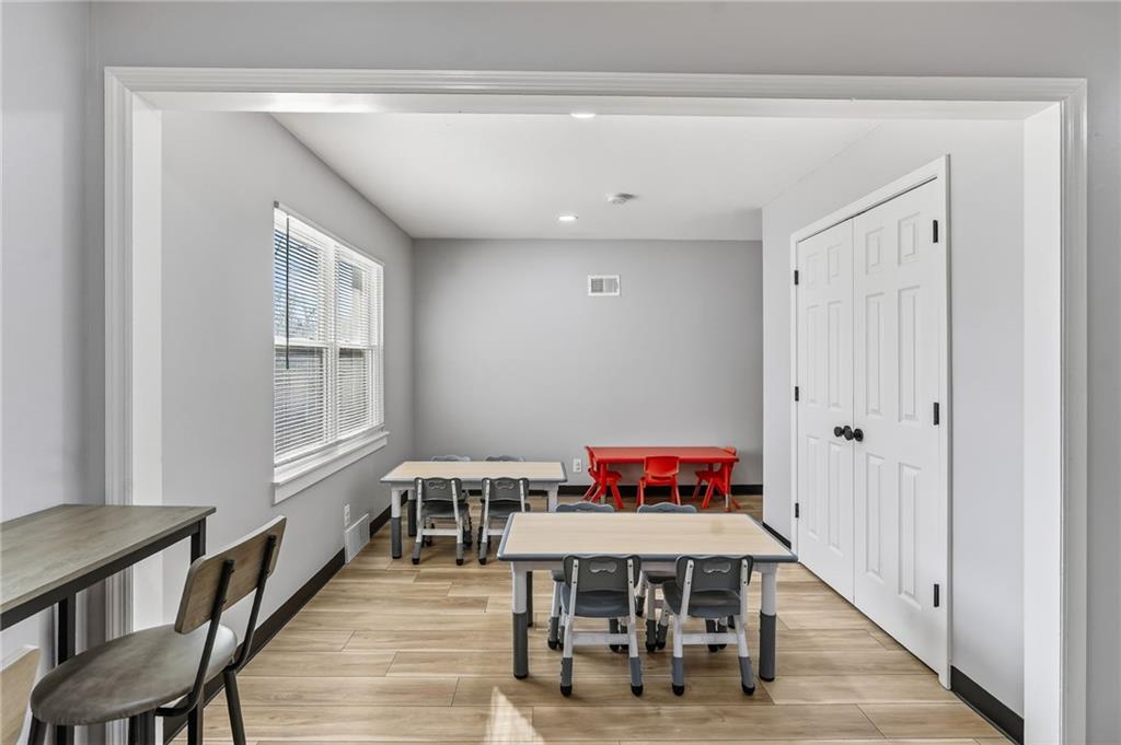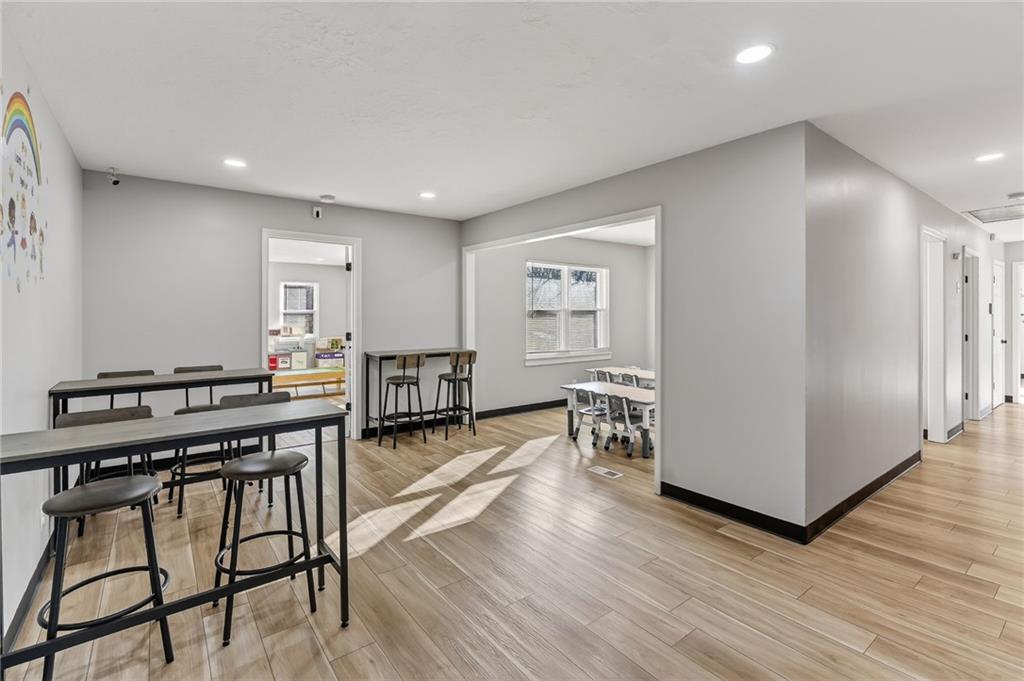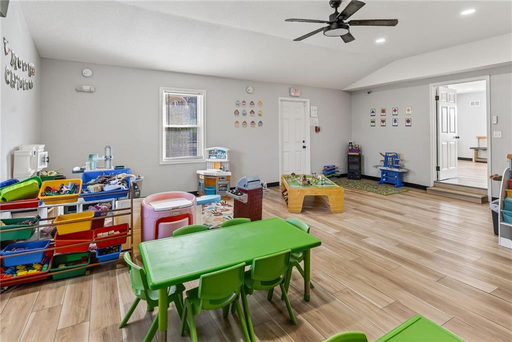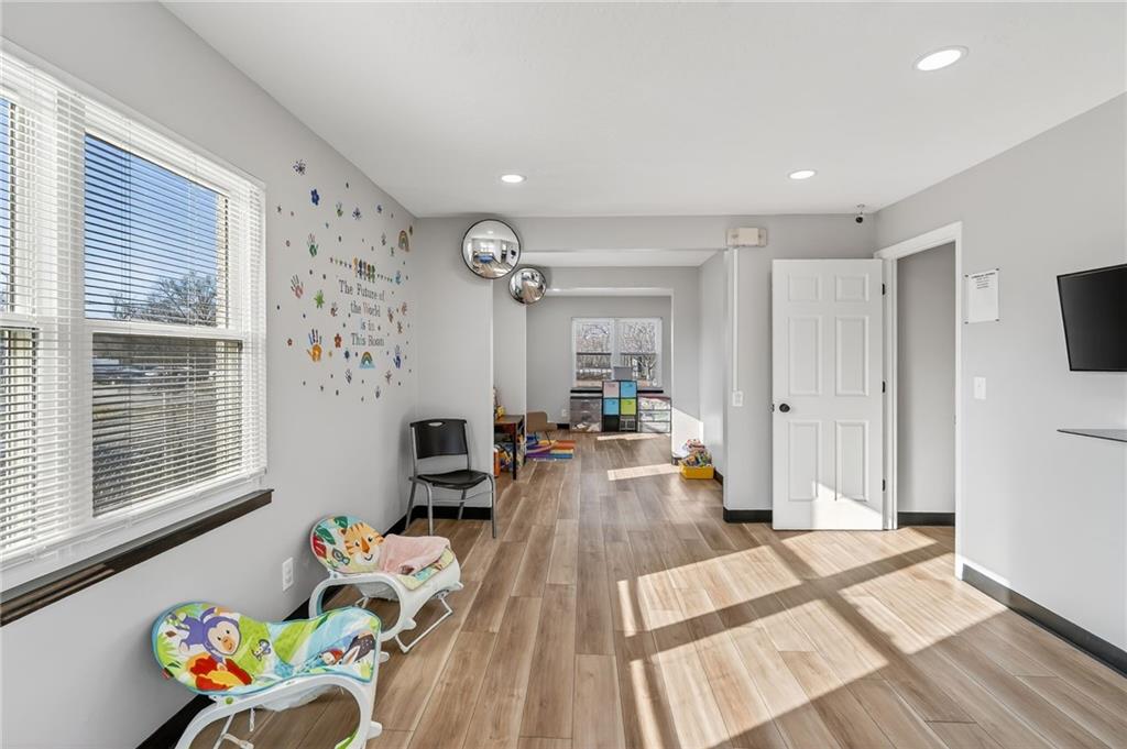 This beautifully newly remodeled daycare facility is designed to provide a safe, engaging, and nurturing environment for children. The property features a welcoming common area, three spacious and thoughtfully designed classrooms, four well-appointed bathrooms, and a dedicated administrative office to support daily operations. Additional amenities include a fully equipped kitchen, pantry, laundry room, ample storage throughout, two fireplaces, and an unfinished basement offering the potential to add additional classrooms or storage space. The facility also includes a spacious two-car garage and a vending machine for added convenience. For enhanced safety and peace of mind, the building is equipped with a security system and an interior sprinkler system. A secure outdoor playground provides ample space for active play and developmental activities. Throughout the facility, modern upgrades and child-friendly finishes create a warm and welcoming atmosphere for both families and staff. This turnkey daycare presents an excellent opportunity for operators seeking a clean, functional, and well-equipped space to support a growing childcare program.
