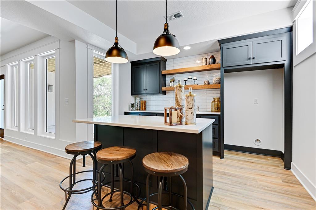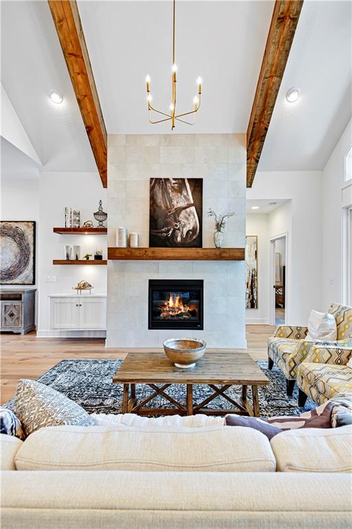 Experience refined luxury in the stunning Bayberry by JFE Construction. From the moment you enter through the impressive 8’ double front doors, you are welcomed by soaring ceilings, dramatic wood beams, and walls of windows that flood the great room with natural light. Expansive sliding doors open to a covered deck with a stone fireplace, perfectly positioned to capture serene greenspace views—an ideal setting for both relaxation and entertaining. The designer kitchen is thoughtfully curated with a large quartz island, stainless steel appliances, rich wood flooring, and an oversized walk-in butler’s pantry, offering both beauty and functionality. The primary suite is a private retreat, featuring a freestanding soaking tub, double vanity, zero-entry shower, and a spacious walk-in closet. A second main-level bedroom or office provides flexible living options. The finished lower level extends the living space with a family room, bar area, game space, two additional bedrooms, and a full bath—perfect for hosting guests. Throughout the home, you’ll find exquisite trim details, wood accent walls, striking black accents, and architectural elements that elevate every space. Located in Canyon Creek Forest, a luxury maintenance-provided, free-standing villa community. Lawn care and snow removal are included, allowing for a truly carefree lifestyle while enjoying all the amenities Lenexa has to offer. Estimated completion April 2026. Still time to make select design choices to personalize this exceptional home. Photos are of a former model and may include upgrades not included in the price.