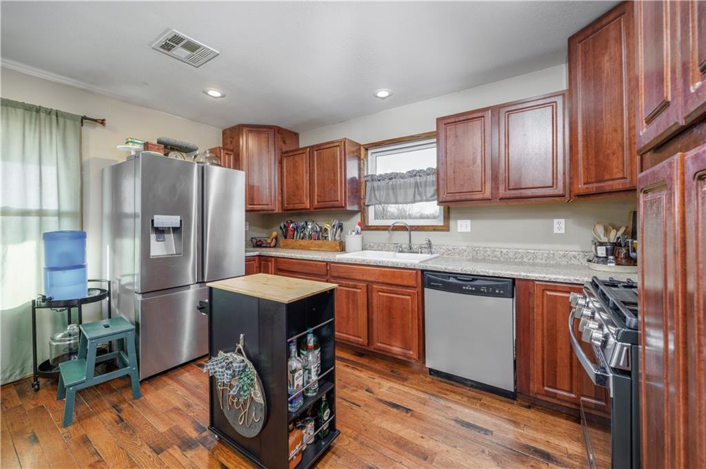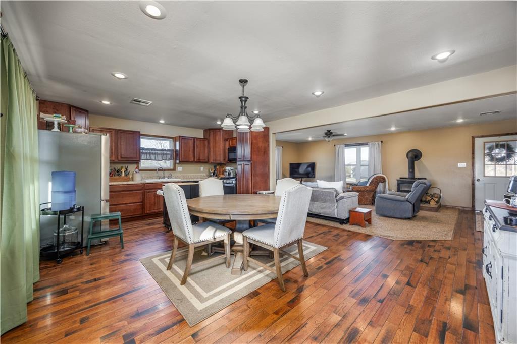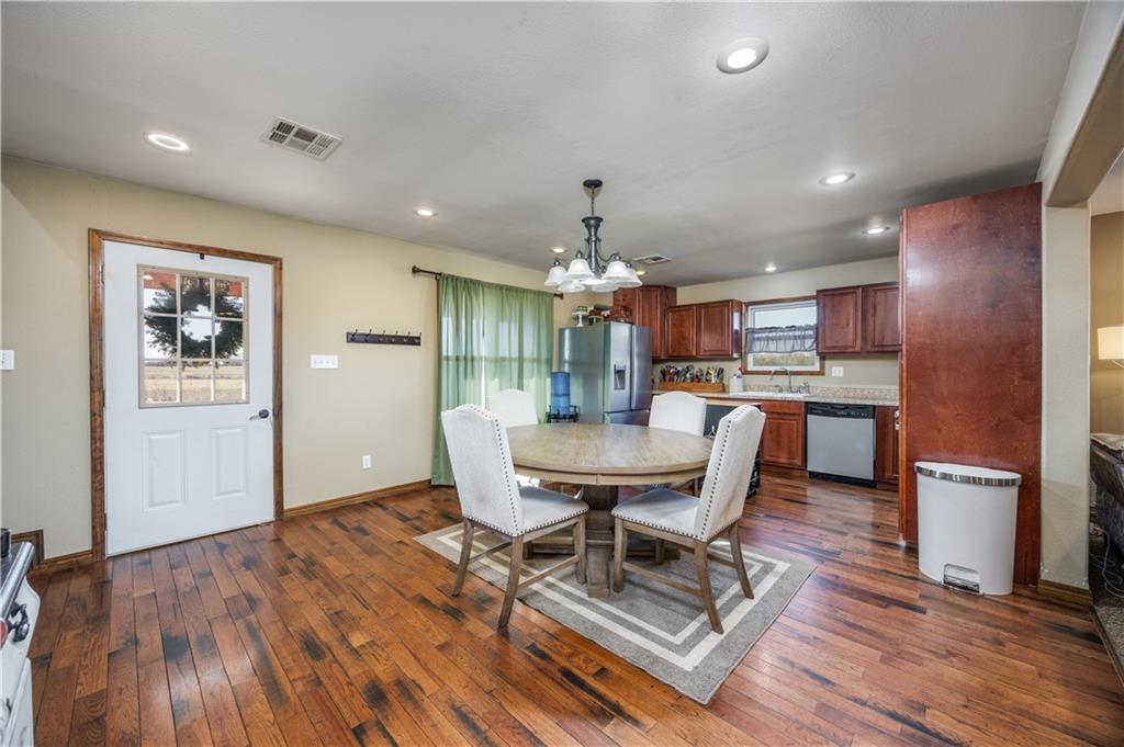 This beautiful, nearly 2,000 sq ft home offers the perfect blend of space, style, and functionality. Featuring 4 bedrooms and 2 bathrooms, the layout is thoughtfully designed with two bedrooms and one bathroom on each level, providing flexibility and privacy for a variety of living needs. The main living area features an open-concept layout connecting the living room, kitchen, and dining area—ideal for everyday living and entertaining. A cozy fireplace anchors the living room, while a newer HVAC system ensures year-round comfort. The fourth bedroom upstairs is generously sized and offers endless possibilities as a bonus room, home office, or guest space. Throughout the home, you’ll appreciate the matching dark trim and doors, adding a cohesive, high-end feel. Outside, the property sits on 5.3 acres and includes a 30’ x 50’ shop, plus additional storage in another outbuilding. A fenced area for livestock makes this property ideal for those wanting space to spread out while still enjoying modern comforts. Located within the Neodesha Promise District, this home offers the added benefit of potential free college tuition for qualifying seniors—a valuable opportunity for families planning ahead. This exceptional property combines acreage, updates, and location, making it a rare find just outside town. Come see for yourself!!!