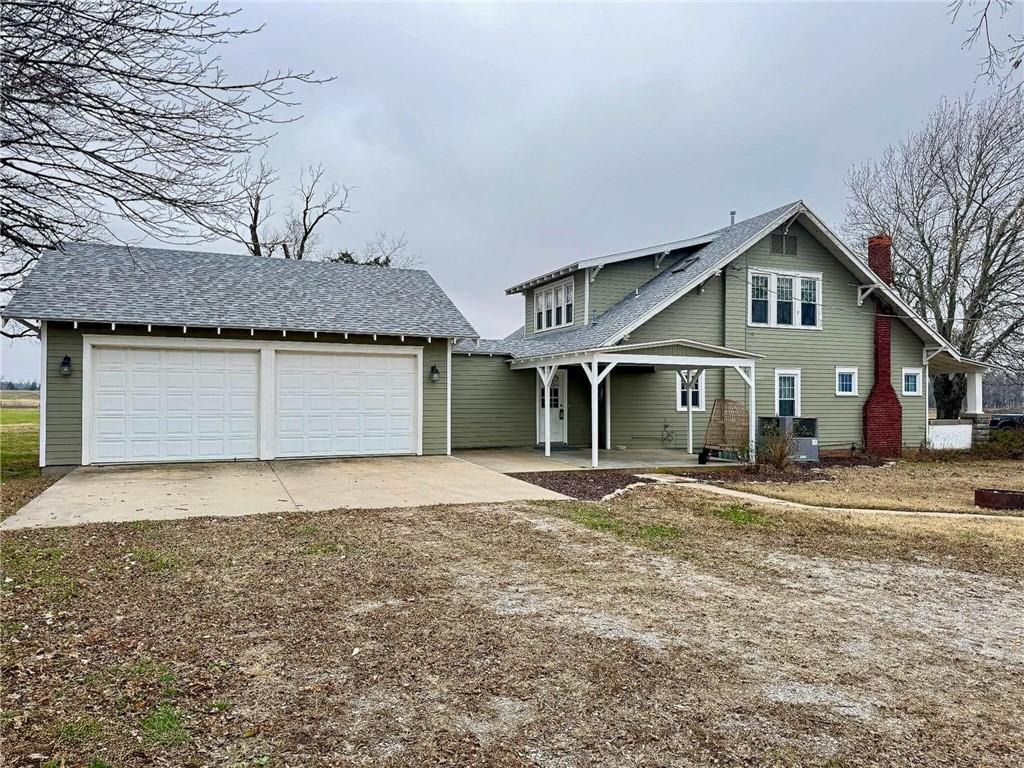 You must see this seamless blend of historic charm and modern convenience. Built well in 1920 and thoughtfully maintained, this farmhouse offers over 2,500 sq ft of impressive living space on 7+ fully fenced acres. Natural light fills every room, highlighting the home's character and warmth. With 5 spacious bedrooms, 2.5 baths, bonus rooms, built-in storage beyond your needs, covered porches, and an oversized attached 2-car garage, there's plenty of room for comfortable living. Inside, the home features a tasteful combination of original details and modern updates. Cosmetic improvements throughout create a welcoming atmosphere, while major upgrades— including a new roof and HVAC system installed in 2022. Appliances and select furniture items are negotiable, offering added convenience for buyers. Outside, the property truly shines. Ideal for a small farm, outdoor hobbies, or anyone needing significant storage, the impressive 40' x 80' Quonset building boasts a 20-foot door—perfect for large equipment, a workshop, or RV parking. Additional outbuildings include a two-car detached garage, a barn with stalls, and two grain bins, providing exceptional versatility for a variety of uses. This charming and functional country property is suited for buyers using all loan types. If you've been searching for a place with space, character, and endless potential, schedule your showing today!