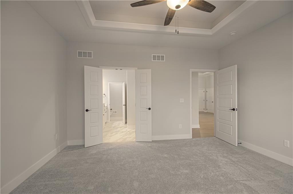 Welcome to the Richmond, a beautifully crafted ranch floorplan by Hoffmann Custom Homes, situated in the highly sought-after Platte County School District. Designed with both style and function in mind, this thoughtfully planned floor plan offers true main-level living with a private primary suite featuring an ensuite bath, along with two additional generously sized bedrooms and a full bathroom. The entryway opens to a spacious great room with soaring ceilings, creating an inviting and open atmosphere. The open-concept kitchen is a standout, showcasing creamy white enameled cabinetry, fresh modern lighting, under-cabinet lighting, a walk-in pantry, and a large island topped with light quartz—perfect for everyday living and entertaining alike. Just off the dining area, a covered deck provides convenient access to outdoor living. Additional main-level features include beautiful engineers hardwoods, a laundry room, coat closet, and a functional drop zone, offering ample storage and organization. Built with 2x6 exterior wall construction, this home is engineered for durability and enhanced energy efficiency. It comes pre-wired for future solar panels, includes an EV charger receptacle, and features additional energy-efficient upgrades throughout. A 10-year structural warranty adds peace of mind. The lower level is stubbed for a future bathroom, allowing flexibility for future expansion or customization. This home seamlessly blends quality craftsmanship, modern finishes, and forward-thinking efficiency in an exceptional location.