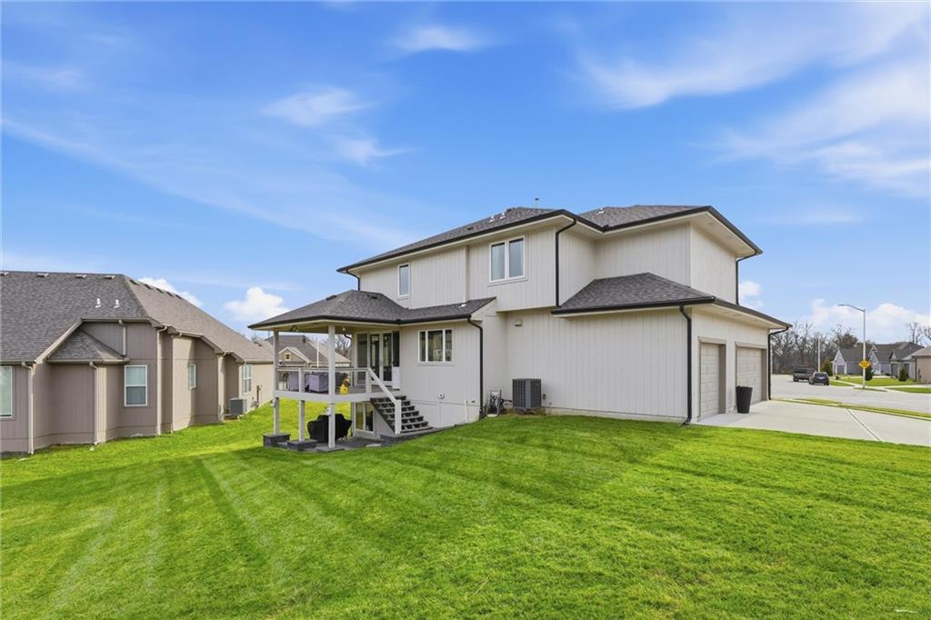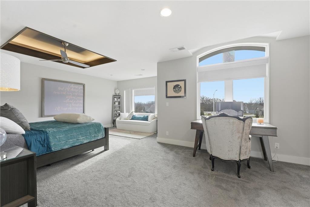 Come tour this contemporary beauty in the sought after Overland Ridge community. Built by Suma Design & Construction, this property boasts 22-foot ceilings in the great room, along with a statement fireplace with designer tile and hearth. Floor to ceiling windows flood the home with natural light. The spacious kitchen offers a gas cooktop, walk-in pantry and Bosch appliances. The expansive primary suite features a spa-like bath, complete with a free standing soaker tub and make-up counter. The 4th bedroom on the main level could double as a home office. A finished lower level provides additional living space with an exercise room (could also serve as a playroom) and a generous non-conforming 5th bedroom with an egress, good-sized closet and a stunning en suite with double vanity, quartz tops, upgraded tile and shower. Extend your entertaining onto the covered composite deck. The owners also added a patio in the back and upgraded landscaping. The oversized 3-car side entry garage has a 240 outlet for an EV. Just a short walk to the community pool and the back deck offers a great view of fireworks on the 4th. This lightly-lived in home is a must-see.