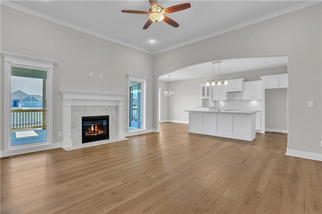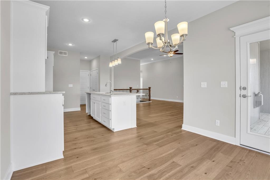 The Sierra is a beautiful reverse 1.5-story home designed with comfort, style, and functionality in mind. The open main level features rich hardwood flooring, 9-foot ceilings, and a seamless flow throughout the living, kitchen, and dining areas. The gourmet kitchen showcases an impressive oversized island, under-cabinet lighting, and gas plumbing for the range—perfect for both everyday living and entertaining. The dining area opens to a covered deck, ideal for relaxing or hosting guests. The elegant primary suite offers a spa-inspired bath and a spacious walk-in closet, creating a serene retreat after a long day. The finished walk-out lower level includes two additional bedrooms and a large rec room, providing plenty of flexible living space. Additional features include recessed lighting in the living room, a dedicated freezer circuit in the garage, and a zoned irrigation system for easy maintenance and convenience. HOA takes care of lawn, snow removal, and maintenance of sprinkler system. Home is currently in the Finishing Stages of construction - Check back in for status updates on the construction of this stunning new build! Photos are stock photos of plan and virtual tour is simulated; finishes may vary.