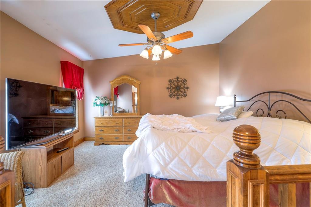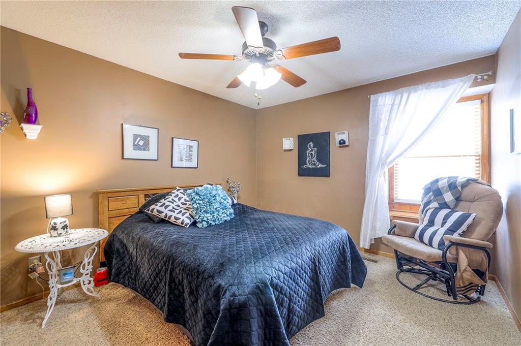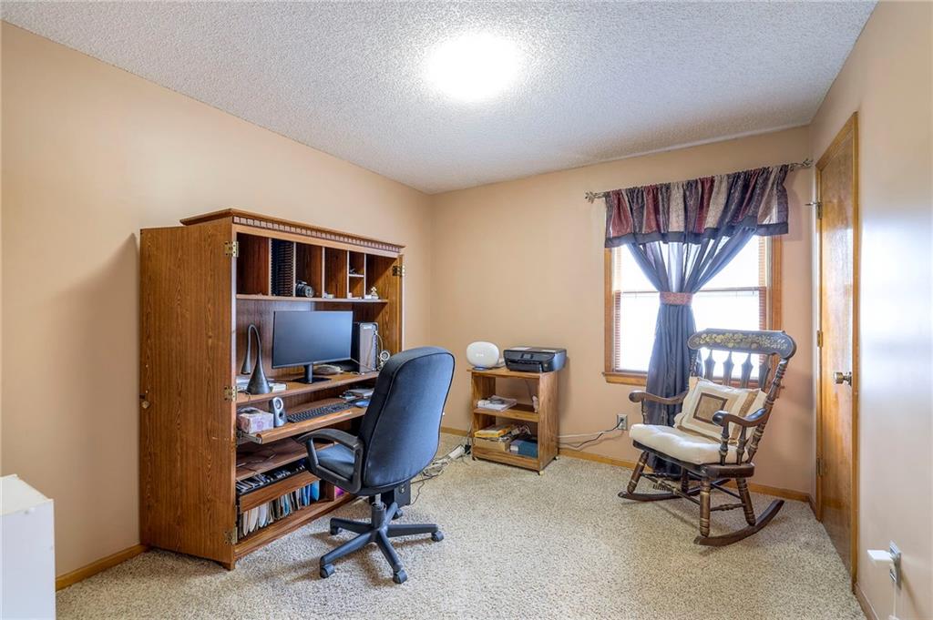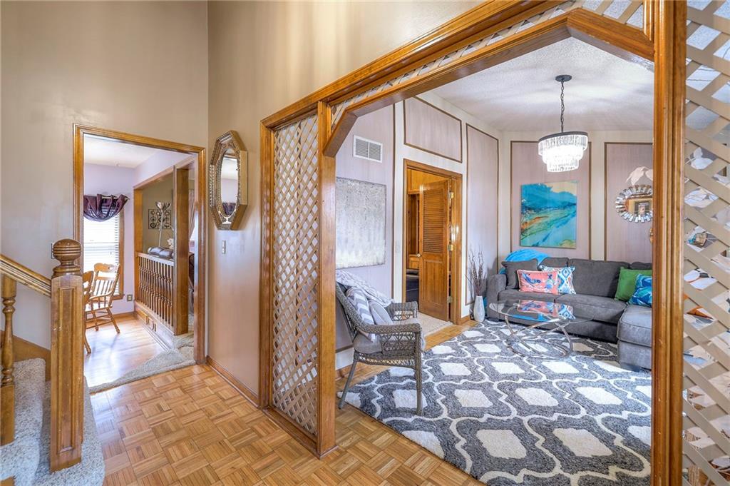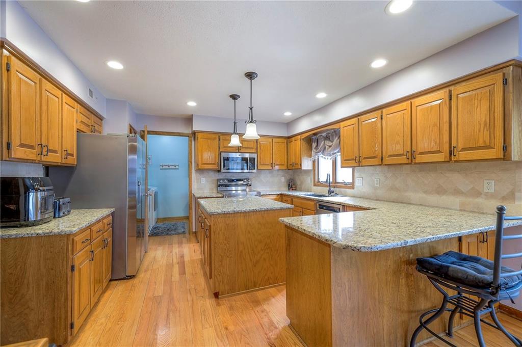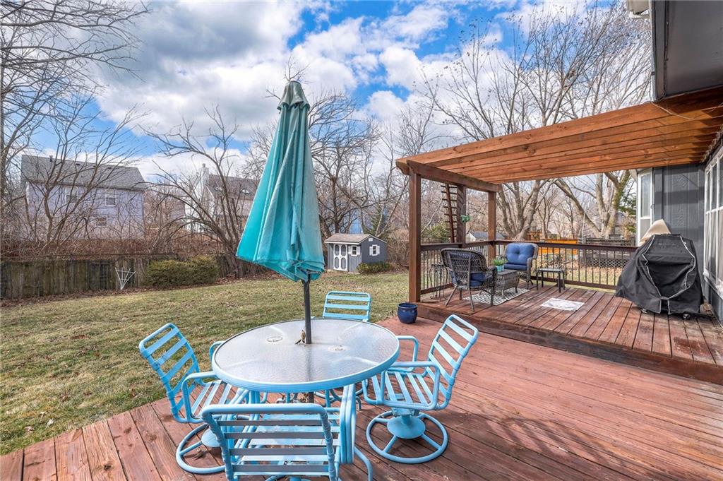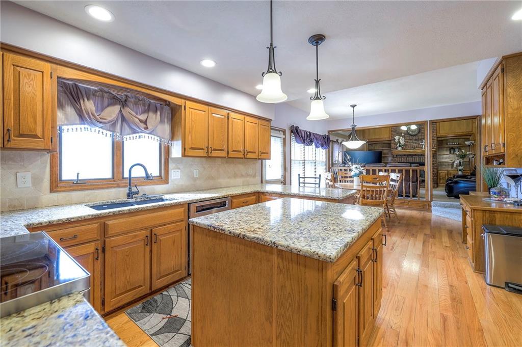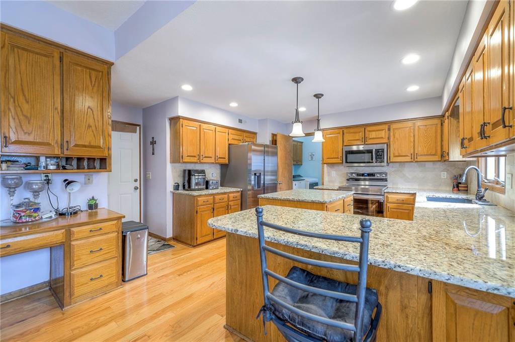 Welcome to this light-filled home in the desirable Havencroft neighborhood! The oversized Great Room features a vaulted ceiling, cozy fireplace and built-in bookshelves--perfect for relaxing or entertaining. Just off the welcoming entryway, a versatile Bonus Room makes an ideal home Office or Library. The upgraded Kitchen offers a new granite island, abundant cabinetry, two additional pantries, and all appliances stay. Gleaming hardwood floors highlight the Entry, eat-in Kitchen and half Bath. A covered Deck extends from the Kitchen, overlooking a beautiful, treed backyard oasis. The spacious Primary Suite showcases a Vaulted ceiling, huge walk-in closet and luxurious Bath with double vanities, walk-in shower and spa tub. Three additional Bedrooms feature new carpet and oversized closets. Enjoy nearby, Haven Park, with playground, tennis courts, trails and picnic area. Located in a friendly neighborhood close to shopping, grocery, highways and award winning schools in the acclaimed Olathe School district. Fast possession available--move in and start enjoying your new home sooner!