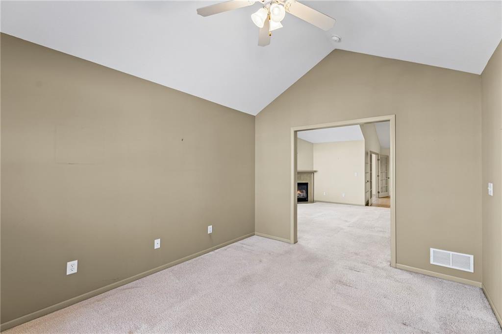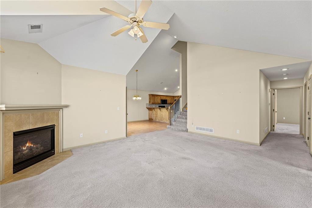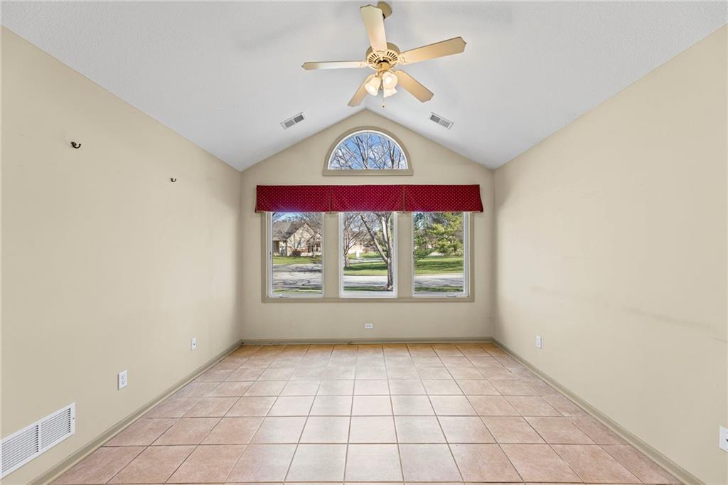 Enjoy The Comfort and Elegance Of Living In This Terrific 1.5 Story Patio/Villa! Located on a cul-de-sac within the coveted St. James Court Subdivision and Blue Valley School District, this maintenance-provided community has no age restrictions. It has a spacious open floor plan along with lofty ceilings that enhance the overall sense of openness and grandeur. The gleaming tile floors reflect natural light throughout the spaces while the elegant great room fireplace provides warmth and charm to this superb house. The terrific kitchen and adjoining dining area boasts plenty of countertop space, tile flooring, breakfast bar, lots of cabinets, pantry, built-in desk. The impressive 16x18 great room showcases the fireplace, c/ fan, carpeting and a wall of windows with lots of natural light. It has a versatile 12x12 sunroom for morning coffee, dining, relaxing and is equipped with tile flooring, vaulted ceiling, double french doors, c/fan, plenty of light. Convenient office area with carpeting, c/fan, window, walk in closet; and with the addition of doors, it can easily be transformed into a third conforming bedroom. The primary suite features a sanctuary of comfort and elegance as it spotlights a spacious bedroom with carpeting, vaulted ceiling, c/fan along with an exquisite en-suite bathroom that includes d/v, ceramic tile, separate shower/tub and huge walk in closet providing a true oasis retreat. It offers one more full bathroom and a laundry room for the ultimate convenience and comfort. The upper level comprises an additional spacious bedroom and a modern full bathroom. This awesome home showcases other features including new roof (2025), thermal windows, sprinkler system plus all of the kitchen appliances are staying too! Incredible HOA amenities include club house, exercise room, party room, swimming pool, trails, lawn maintenance, snow removal and many other items! Wonderful curb appeal, fantastic location along with nearby Blackbob and Heritage Parks!!
