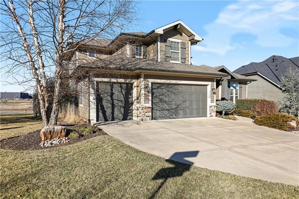 Welcome to 9158 W 178th Terrace, a beautifully maintained Emery Expanded 1.5-story home by James Engle Custom Homes, located on a quiet lot with pond views in the desirable Arbor View subdivision. This elegant home offers 6 bedrooms, 4.5 baths, and a 3-car garage, with an open, light-filled layout and upscale finishes throughout. The gourmet kitchen features granite countertops, a large island, stainless steel appliances, and a walk-in pantry. The main level includes a private primary suite with a spa-like bath and direct access to the laundry room, plus a flexible bedroom or office. Enjoy outdoor living on the covered patio with a fireplace overlooking the beautifully landscaped yard. Upstairs offers spacious bedrooms and a loft, while the finished lower level includes a recreation area, a sixth bedroom with egress, a full bath, and ample storage. Premium upgrades, including trim work, whole-home audio, and landscaping, make this move-in-ready home a must-see in prime Overland Park!