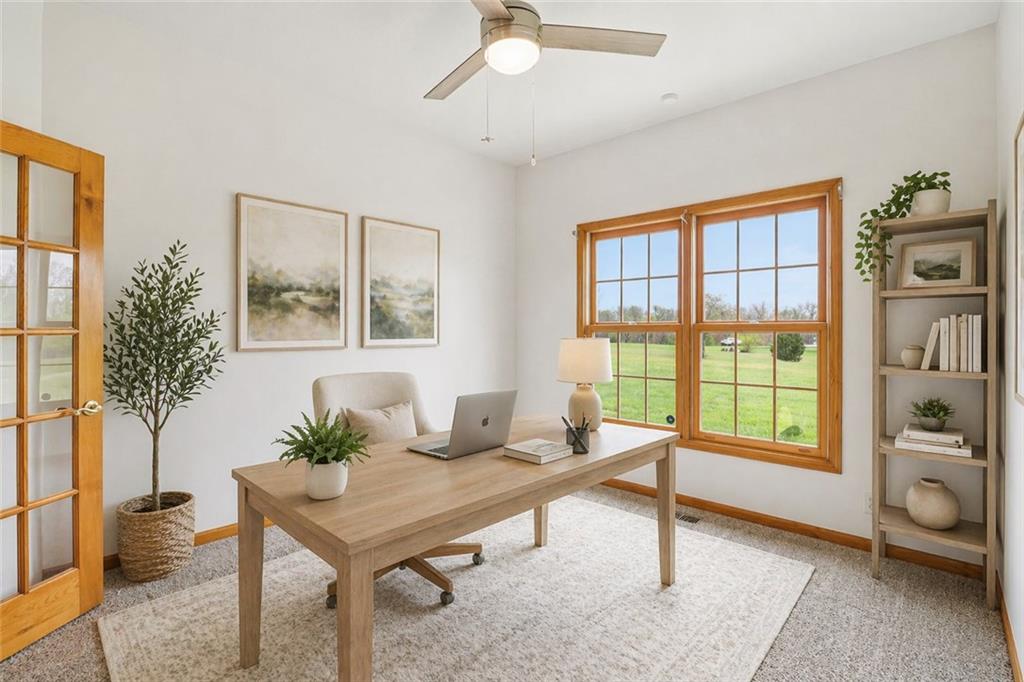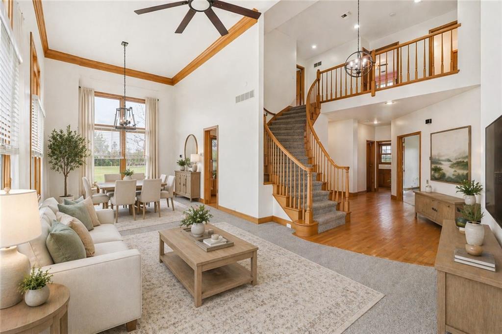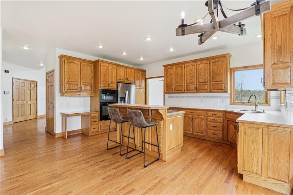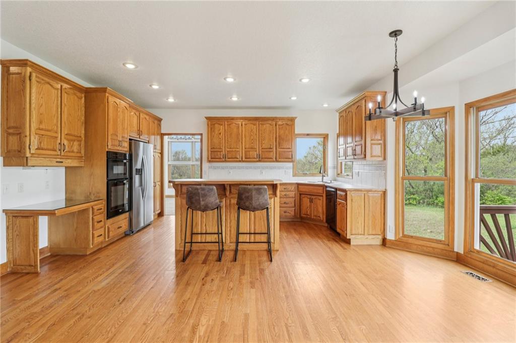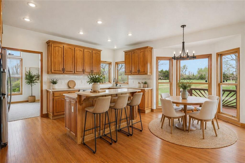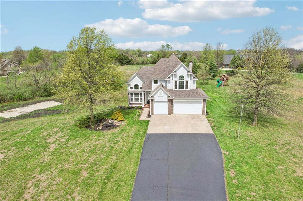 Welcome to this spacious 1.5 story home, set on 5.7 acres and nestled in the highly sought after Bear Lake community and Basehor-Linwood school district. From the moment you step inside the house, you’ll appreciate the vaulted ceilings and large windows that create an open, airy feel throughout the entry, living and dining spaces. The thoughtfully designed floor plan flows seamlessly into a kitchen focused on function and featuring a center island perfect for everyday living, gathering, and entertaining. Downstairs, the finished walkout basement offers additional living space with plenty of flexibility for a second living area, home office, or recreation space. Step outside and enjoy the peaceful surroundings, with access to a 60 acre fishing lake and an 80 acre wildlife preserve complete with scenic walking trails. This properly truly offers the perfect balance of comfort, space and nature. Enjoy the peace of mind that comes with major updates already completed. Fresh interior paint in 2026 gives the home a bright, refreshed feel, while 2025 brought key exterior and system upgrades including a new front door, two sliding doors, water softener, and a resurfaced driveway. With a newer water heater, AC unit and furnace(2023), the heavy lifting has been done. Outside, a 30x40 concrete pad with electrical access offers endless possibilities for a shop, hobby space, or additional storage. The playset stays!