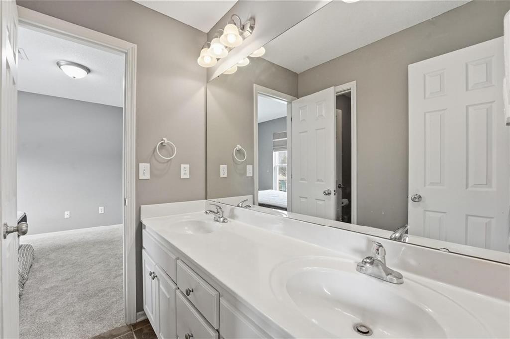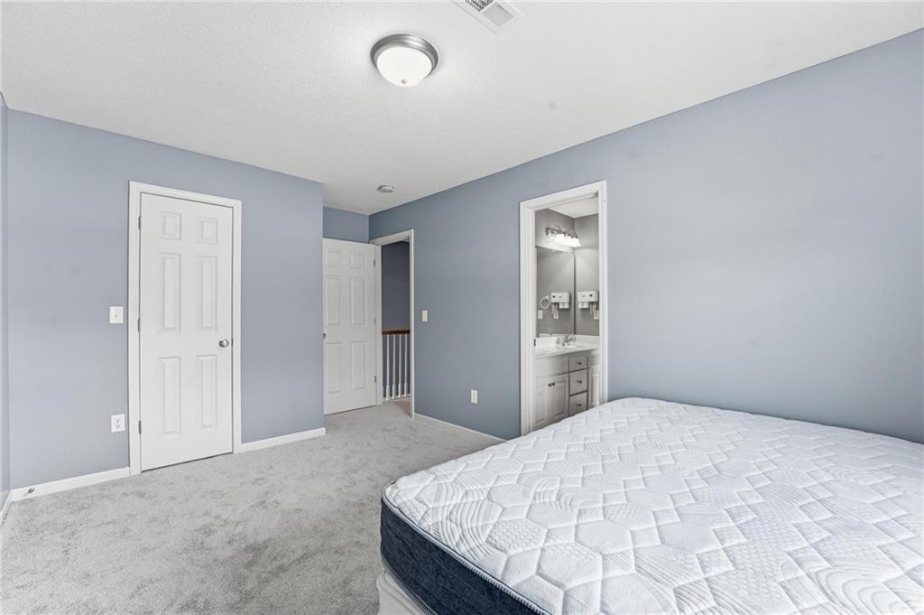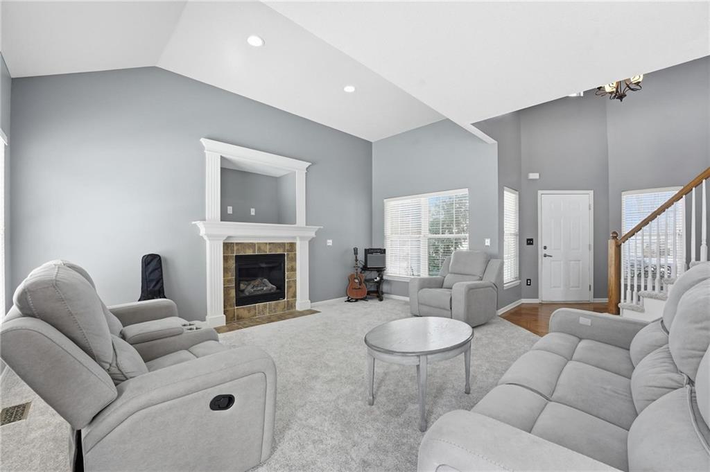 Beautiful 2 story home with cozy front porch, Welcoming entry with wood floor and offset staircase. 2 story great room has gas fireplace, large windows, open plan. Large dining area, kitchen has wood floors. Kitchen has tons of custom cabinets, center island, all with granite countertops. 1/2 bath completes the main level. Wide staircase leads to 2nd floor. Primary suite is a true retreat with huge bedroom, vaulted ceiling, ceiling fan & large walk-in closet. Private, luxury bath has dbl vanity, tile floor, separate tub & shower. 2 additional bedrooms have large closets and share jack/jill bathroom with dbl vanity & tub/shower in separate room. Laundry is located on bedroom level. ALL NEW INTERIOR PAINT & CARPET main level & bedroom level, staircases up & down, January 2026! Roof 4 yrs old. 2025-hot water heater, sump pump, shed, deck floor replaced with composite. 2024 exterior paint. Sellers finished daylight basement family room with LVP flooring, plenty of unfinished space remains for storage. Landscape updated recently.