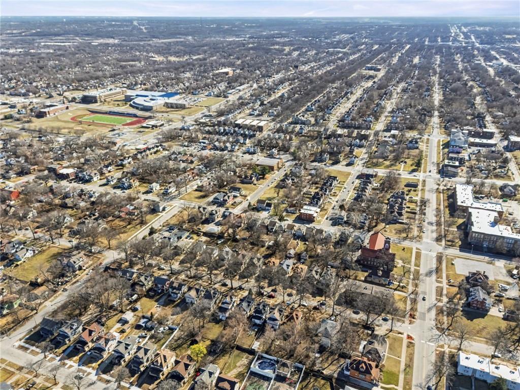 1-49 to E 31st St, East to Benton Blvd North to E 29th East to home.