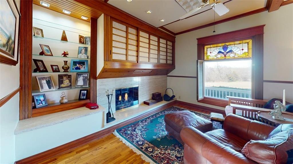 Artistic Modern Farmhouse on 24 Serene Acres Vernon County, MO | Just South of Nevada Discover the perfect retreat just outside the city limits of Nevada, Missouri. Situated on 24 peaceful acres of rolling pasture and mixed timber, this high-end modern farmhouse offers over 2,200 sq. ft. of meticulously updated living space. From the moment you turn off the paved road and ascend the long, private drive to the circular courtyard, you’ll realize this is not just a home—it’s a sanctuary. The Main Residence: The interior of this 3-bedroom, 3-bathroom home is a masterclass in "functional charm," featuring large, light-filled rooms and high-end custom finishes. Stately exposed beams, paneled wood ceilings, and graceful arches create an atmosphere of timeless elegance, accented by classy stained-glass windows. Cozy up by one of two fireplaces, including a stunning living room centerpiece featuring a handsome marble hearth. The Master Suite: A true showstopper, the master retreat includes a stately loft, a tiled bathtub, and a massive walk-in closet. The floor-to-ceiling windows offer breathtaking views of the acreage, equipped with motorized blinds for effortless privacy. The Guest House & Grounds: Versatility is built into the property with a 600 sq. ft. guest cottage. Perfect for a home office, a private space for extended family, or a lucrative vacation rental, it includes: 1 Bedroom / 1 Bathroom, kitchenette and cozy living area, an attached four-car garage with additional storage space. The Land & Location: While the home feels completely secluded, you are only minutes away from the shopping, dining, and healthcare of Nevada. The 24-acre parcel is predominantly pasture, making it ideal for hobby farming or horses, with patches of timber providing natural privacy and wildlife habitat.