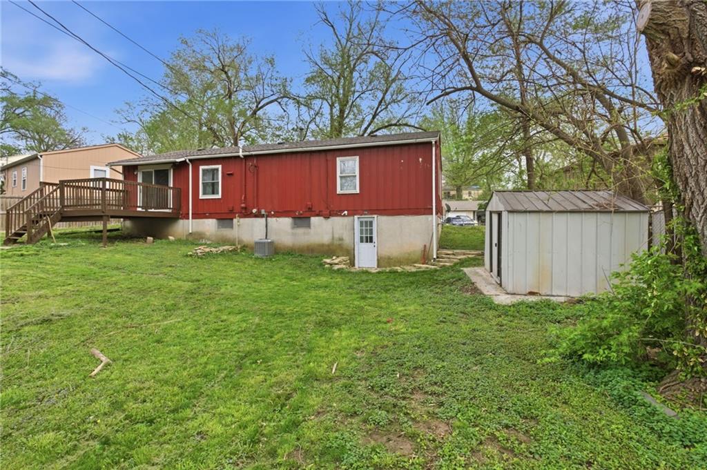 Welcome home to this spacious ranch home located just 10 minutes from the new 2031 season Chiefs stadium! This home combines timeless quality updates with plenty of storage and living space, featuring 3 bedrooms and 1 bath on the upper level and a fourth bedroom, a fifth non-conforming bedroom, and second full bath in the finished walkout basement. The welcoming kitchen features a unique custom epoxy bartop overlooking the dining area. Walk out to the back deck and expansive fenced in backyard, perfect for yard games, firepit cookouts, and all your outdoor activities. You won’t want to miss this gem of a house! Please note that part of the garage has been converted to the dining area living space, so the garage is smaller than the typical garage space. It won't fit most trucks or standard sized SUVs.