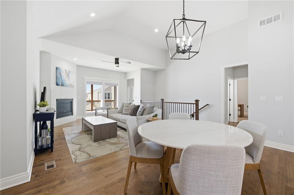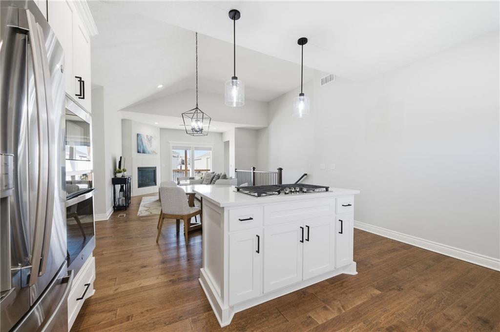 Maintenance provided living at it's BEST! 2 Years young! Inviting, covered front porch. Happy and bright interior! Wide plank, honey-toned, textured Hardwood Floors caress the main floor. Open kitchen featuring Arctic White Quartz counters and island with 5-burner gas range, downdraft hookup ready if desired,soft-close cabinets and drawers, SS appliances, open to dining and great room w/ gas fireplace, Covered Deck, and steps to the yard! Underground fence installed for your sweet pups, or install a fence! Rare options for maintenance provided properties! HUGE Primary Suite with Double Vanity, Ceramic tile shower, potty closet, large walk-in closet conveniently connected to the Laundry Room. 2nd Main Floor Bedroom and full bath! Lower level has media room/rec room and 3rd bedroom & Bath. Two storage largestorage rooms! ALL Stainless Steel Appliances stay and Washer/Dryer! Furniture negotiable! New hot water heater 2025! Vivint security system ready! STUNNING professional landscaping with River Rock beds Lawn care & snow removal included in low monthly HOA Fees of $125/ monthly ($1,500 annually)! Close proximity to shopping, restaurants, parks & recreation, and Smithville Lake! Great access to Hwy 169, 152, and 435! Get to the airport in less than 15 minutes!