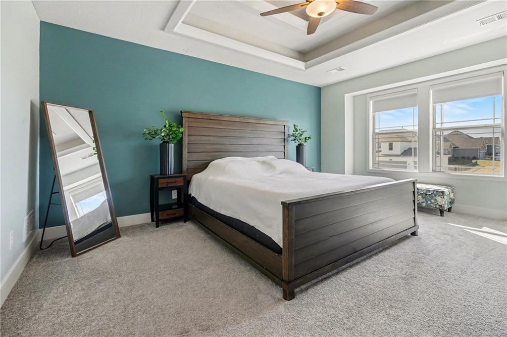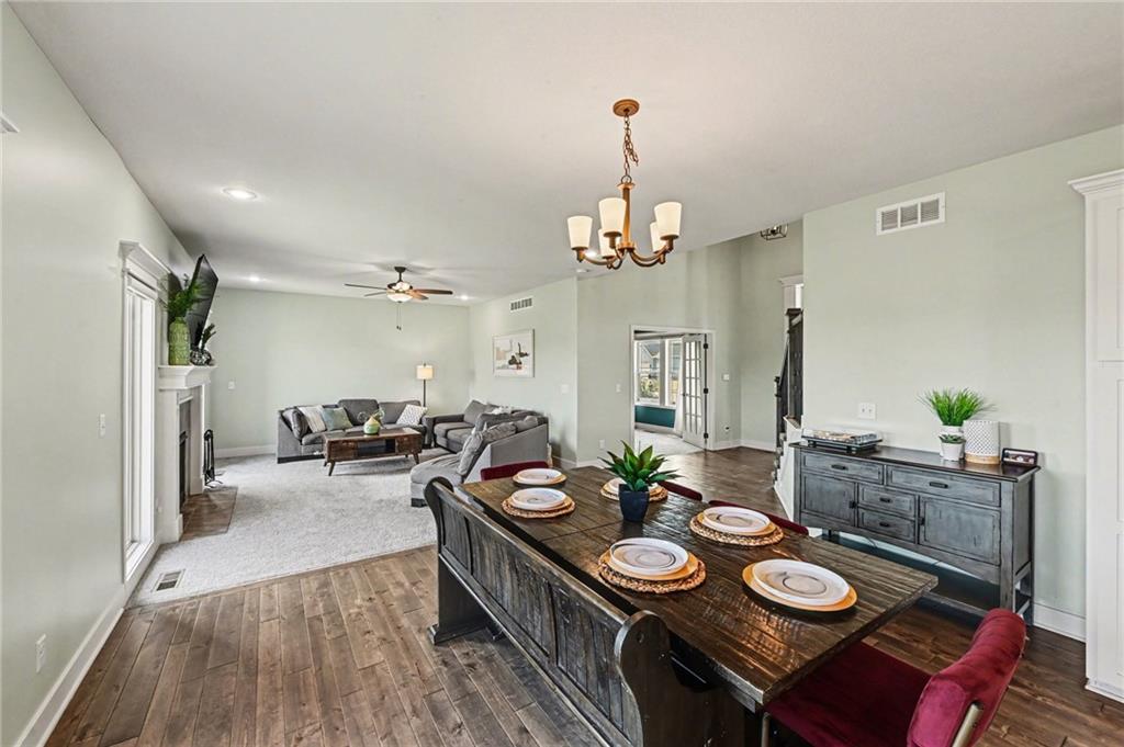 4 bedroom, 2.5 bath Logan Plan by Hoffman Custom Homes in the highly desired Waterford Subdivision within the Staley High School District! This wide-open two-story backs to green space and is filled with natural light. The main level features a spacious kitchen with a large island, granite countertops, walk-in pantry, wide-planked wood floors, and a bright, separate office. Upstairs offers bedroom-level laundry and 4 spacious bedrooms, two with large walk-in closets. The basement is prepped for finishing with electrical completed, insulation installed, abundant windows, and a walk-out to the flat backyard that opens directly to green space. Exterior features include a covered deck, lower patio, level yard, and a large 3-lane driveway with an installed basketball hoop. The neighborhood also offers a community pool for added recreation. A fantastic opportunity to own a better than new Logan plan with high energy package with 95% high efficiency HVAC, Gerken thermopane windows and R-49 insulation in the attic!