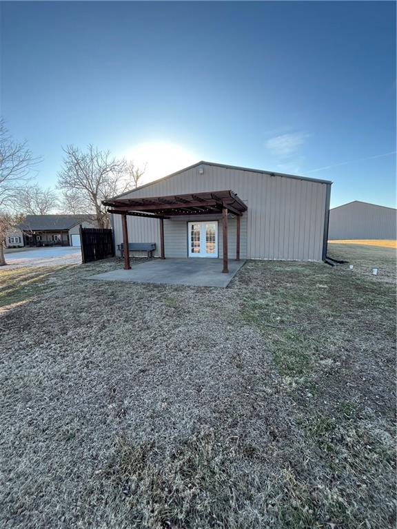 Welcome to this exceptional two-story property, beautifully set on 13 acres. The 4-bedroom, 2-bath home offers an updated kitchen, generous living space, abundant closets, and an inviting upstairs common area—perfect for a game room, media lounge, or quiet retreat. An attached two-car garage includes a built-in safe room, adding peace of mind to everyday living. Beyond the home, the property truly shines. Two detached shops open the door to endless possibilities. One shop is thoughtfully designed with two separate entertainment spaces that seamlessly flow together, complete with a half bath—ideal for gatherings, events, or even a private venue. The second shop features a gravel floor and pew-style seating, lending itself beautifully to ceremony settings, creative uses, or impressive storage. The outdoor space is just as captivating, with expansive yard areas, designated outdoor seating for events, and a serene pond-side seating area perfect for hosting or relaxing. Farther back on the property, an additional quiet seating spot offers a peaceful place to fish, unwind, or simply enjoy the natural surroundings
