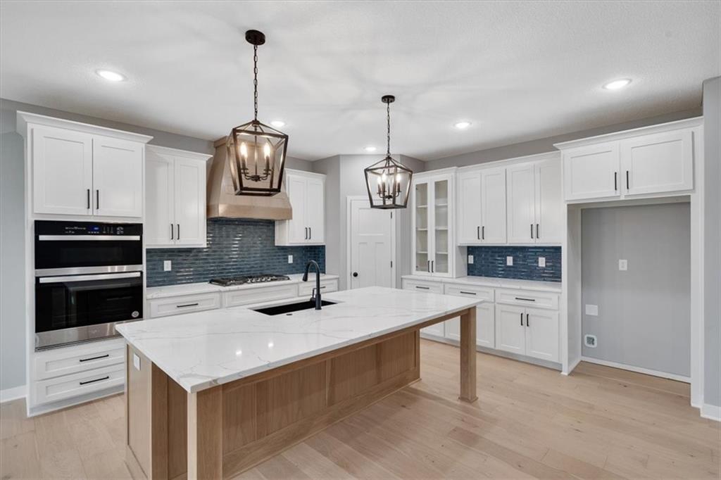Lot 41 - True Ranch home built by Jim Perry Homes with a finished lower level. Sits on a cul-de-sac daylight lot. FINISHED PHOTOS OF A PREVIOUS and SMALLER MODEL. This one is an EXPANDED version of those photos. Estimated Completion is late May 2026. Three Bedrooms & 2 Baths on the main level! Spacious Living Room with fireplace, open to the amazing Dining Area & Kitchen. The Kitchen has a large quartz topped island, gas cooktop and abundant counter space/cabinets. Primary suite includes large bedroom, walk in shower, and walk in closet. Nice covered deck! Lower Level has a fabulous Rec Room including a nice wet bar area and Two more Bedrooms with walk in closets and a third full Bath. 3 Car Garage. Sprinkler System. Enjoy golf course living in a great location, close to everything! Convenient highway access. Ten minutes to the Legends and 30 minutes to the airport and most other parts of the metro area and to Lawrence. Community pool, play and picnic area, tennis, basketball and pickleball courts. Area restaurant open to the public. Acclaimed Basehor-Linwood Schools! HOA also covers lawn maintenance (mowing/trimming/blowing, weed and feed, sprinkler turn off/ turn on, landscape maintenance) and snow removal over 2 inches.