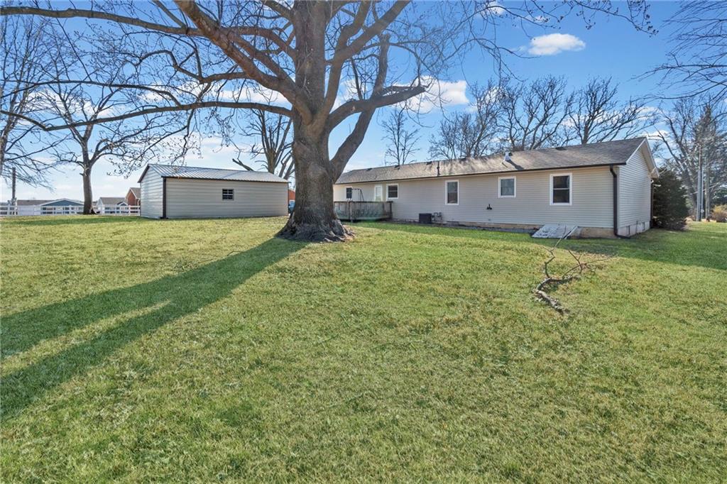 This stunning brick ranch is the perfect blend of timeless charm and modern comfort, offering over 1,700 square feet of thoughtfully designed living space. Nestled on a beautifully spacious .733-acre lot, the home welcomes you with classic brick curb appeal, an attached garage, and a setting that feels both private and inviting. Step inside to a bright, airy floor plan filled with natural light and an open, flowing layout that makes everyday living and entertaining effortless. The main level features three comfortable bedrooms, two full bathrooms, and a highly desirable main-level laundry room. Recent updates add peace of mind and style, including a new roof, updated bathroom, flooring, fresh paint, and thermal windows. The full, unfinished basement offers endless potential for future living space, recreation, or storage—ready to be customized to suit your needs. A main-level walk-out provides easy access to the backyard, seamlessly connecting indoor and outdoor living. Outside, the backyard is a true retreat. Enjoy peaceful mornings or evening gatherings on the back deck while overlooking the expansive yard—perfect for gardening, play, or simply relaxing. An additional outbuilding provides excellent space for storage or a workshop, adding even more versatility to the property. With its thoughtful updates, flexible spaces, and serene setting, this home beautifully combines comfort, functionality, and classic appeal.