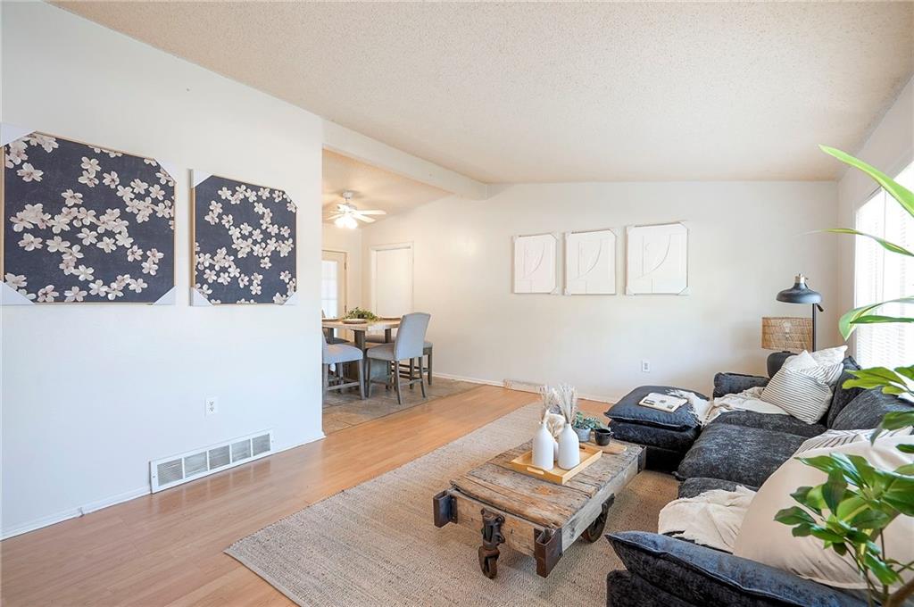 Honey, stop the car! This fantastic 4-bedroom, 2-bath half-duplex in Belton is the move-in ready home you've been searching for, complete with fresh paint inside and out. Step inside to an open and bright living room, filled with natural light from newer windows and showcasing gleaming hardwood floors that extend throughout the home. The kitchen is equipped with durable ceramic tile floors, matching ceramic countertops, a stylish backsplash, and offers a pleasant view of the backyard. From the dining area, elegant French doors lead out to a spacious deck—perfect for unwinding or hosting guests—which overlooks the private, fenced-in yard. All four spacious bedrooms feature beautiful hardwood floors and ceiling fans. The home includes two full bathrooms for your convenience: the hall bath offers a classic shower-over-tub combination with full ceramic tile, while the second bathroom features a modern walk-in shower. Unlock incredible potential in the full unfinished basement! Featuring an egress window, easy plumbing access for an additional bathroom, and a sump pump, this space offers the opportunity to add nearly 600 square feet of living area and build instant equity. Don't miss this fantastic opportunity