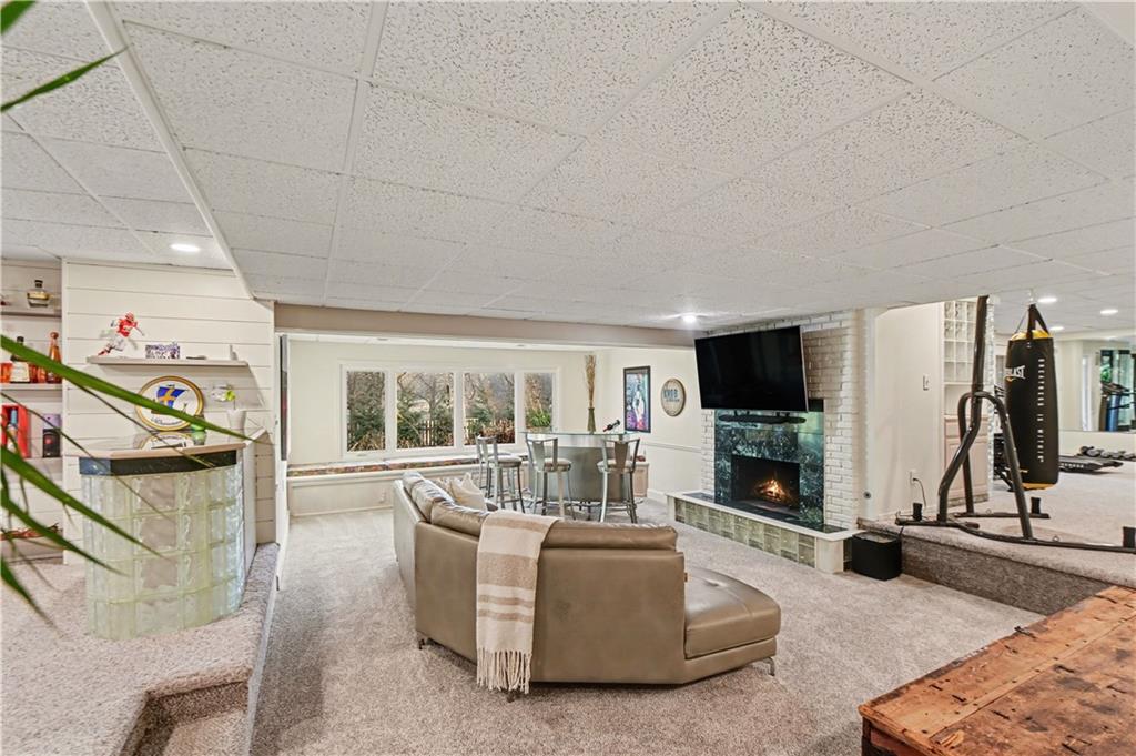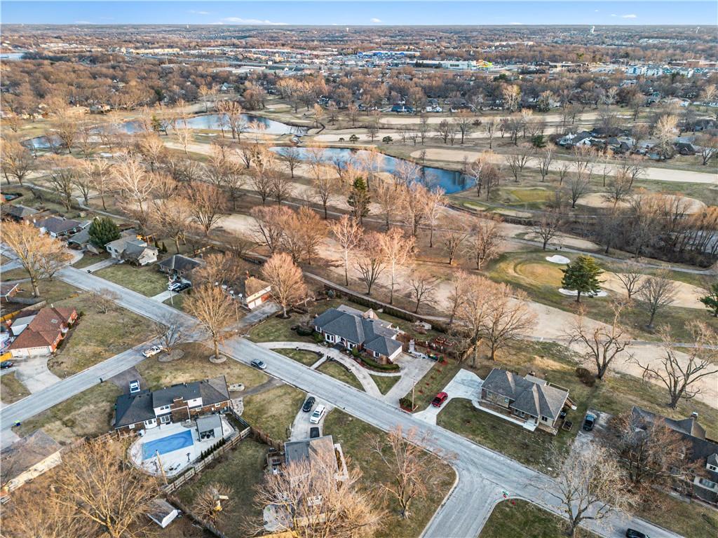 Stunning 1.5-story estate offering 4 bedrooms, 4.1 baths, a 2 car garage, and nearly 5,600 square feet, perfectly positioned on over half a acre lot along the golf course at Blue Springs Country Club. From the moment you arrive, the charming front entry welcomes you into a light-filled home designed to impress. Soaring ceilings with striking wood beams elevate the living room, where a beautiful fireplace anchors the space and walls of windows frame breathtaking golf course views. Just off the entry, a private main-level office provides the ideal work-from-home setting. The open-concept kitchen features granite countertops, abundant cabinetry, and flows seamlessly into a sunlit eat-in area/sunroom that opens onto the upper deck. Do not miss the laundry and mud room that is off the oversized garage. The main level also features a spacious primary suite with a beautifully updated spa-like bath, complete with double vanities, soaking tub, and walk-in closet. An additional bedroom and full bath are located on the main floor. Upstairs, you’ll find two oversized bedrooms and a full bath, offering comfort and privacy for family or guests.The walkout lower level is an entertainer’s dream and not to be overlooked. Enjoy a massive family room with bar area, dedicated exercise room, all-seasons room, full bath, fifth non-conforming bedroom, and even a 3rd garage with two workshop spaces — ideal for hobbyists or extra storage. The meticulously landscaped yard is truly exceptional, featuring an upper-level sitting deck, lower-level patio, and established vegetable gardens ready for the next growing season. This home has been impeccably maintained updated with fresh interior paint, refinished hardwood floors, new lighting, an updated primary bath, and more. A rare opportunity to own a golf course retreat that combines elegance, comfort, and functionality — this is a home you must experience to truly appreciate.