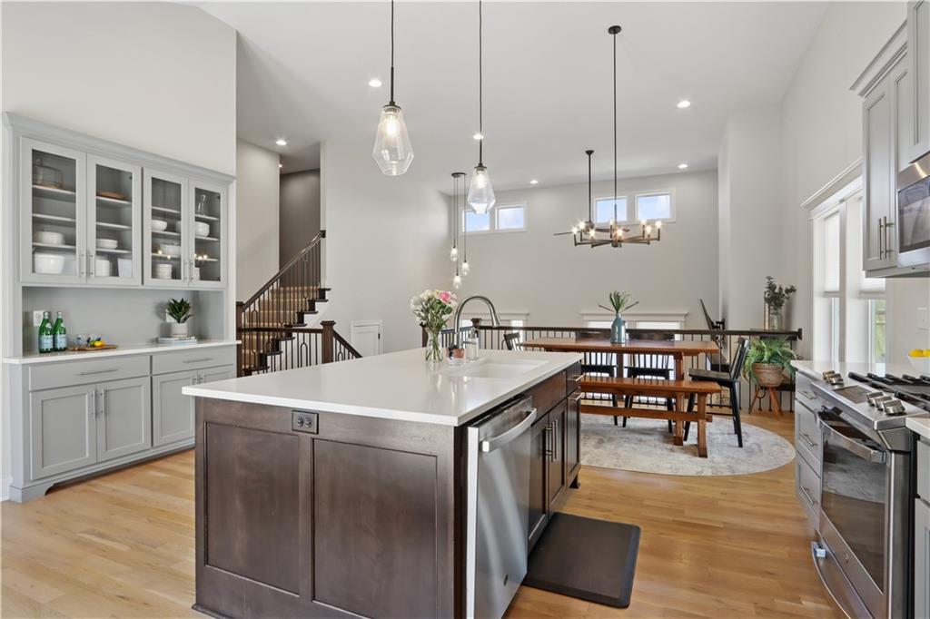 Life feels easier in this beautifully maintained, 4-year-old home nestled in the sought-after Estates of Timber Springs in Shawnee. Meticulously cared for, this residence blends modern style with everyday functionality. Inside, you’ll find hardwood floors, a stunning stone fireplace that anchors the living space, and a thoughtfully designed layout perfect for both relaxing and entertaining. The kitchen offers a generous pantry for storage, while a dedicated laundry room adds convenience to daily living. The spacious primary suite serves as a private retreat, complete with double vanity sinks and a well-appointed bath. Step outside to enjoy the patio and backyard, ideal for gatherings or quiet evenings at home. Additional highlights include a three-car garage, extra storage room in the basement, 4-year-old roof and HVAC system, and a radon mitigation system already in place for added peace of mind. Located in a walkable neighborhood close to parks, schools, and Lake Quivira Country Club, this home truly checks every box for comfort, quality, and location.