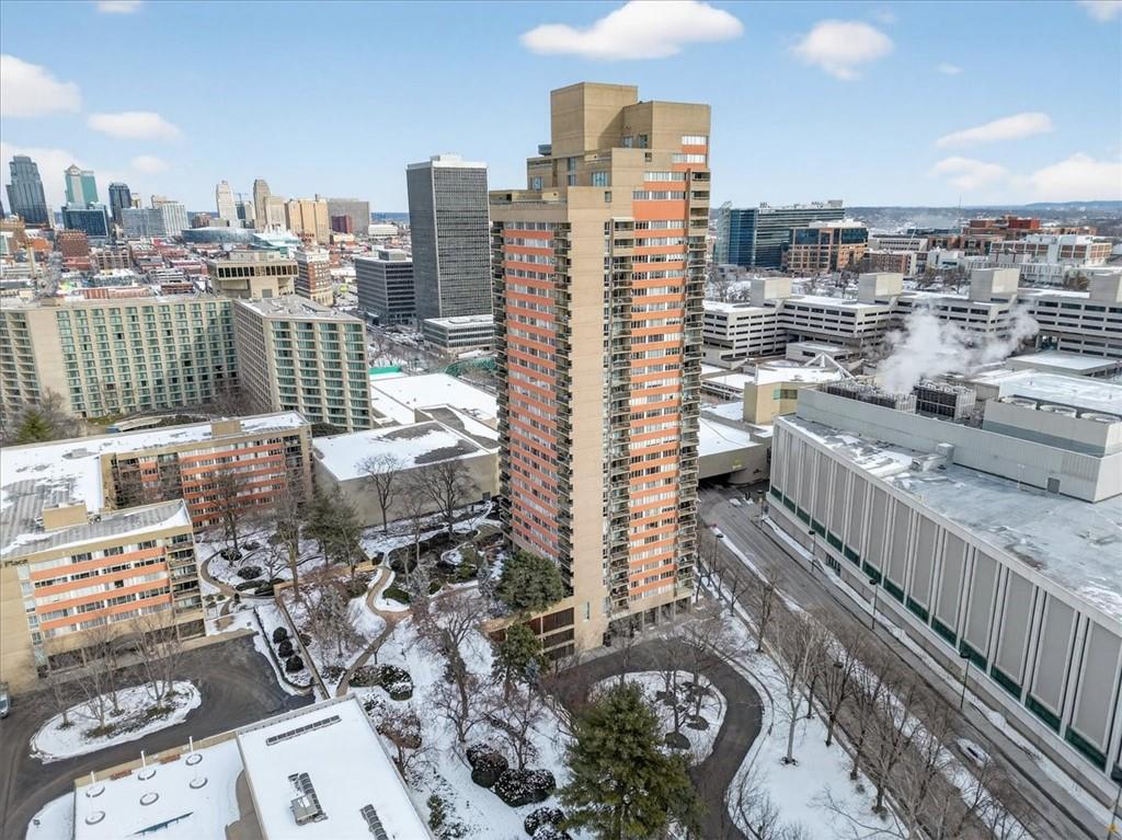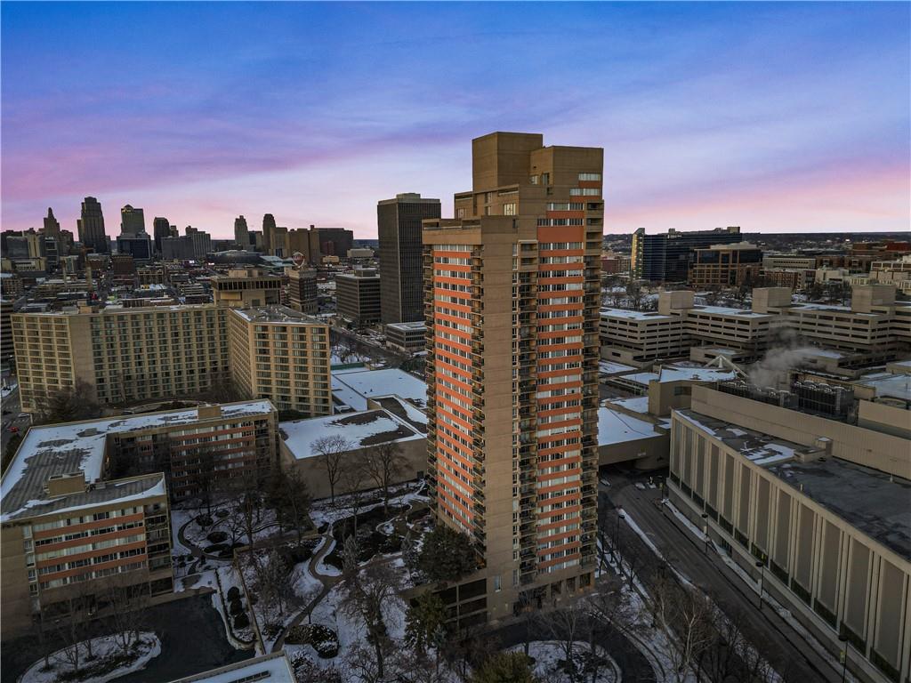 Welcome home to San Francisco Tower, one of Kansas City’s most iconic full-service high-rises, where a 24/7 doorman & concierge service, resort-style amenities, & breathtaking skyline views create an elevated lifestyle. Recently updated, this condo features an airy open-concept layout w/heated floors & a designer kitchen that anchors the space with sleek modern cabinetry, premium finishes, & a polished, contemporary look, ideal for everyday living and effortless entertaining. Step onto your private south-facing balcony to take in incredible views of Liberty Memorial, the KC skyline, & the lush 1.5-acre private gardens below. It is the perfect front-row seat for concerts, fireworks, & even the magic of Christmas lights, & the rooftop offers another unforgettable place to enjoy the view. Located in the heart of Crown Center, this is a rare opportunity for true urban convenience w/underground walkability to Halls, Crown Center, Union Station, & 17+ restaurants, making this a one-of-a-kind gem for anyone who wants effortless access to dining, shopping, & Kansas City’s favorite seasonal events & holiday festivities. The opportunities are endless w/continued momentum around a potential downtown Royals stadium district, plus quick access to the downtown airport, major highways, & MCI, & less than 20 minutes to Arrowhead & Kauffman for game days. With Kansas City selected as a FIFA World Cup 26 host city, you will be right where the energy is, w/matchday excitement, visitors, & fan experiences centered around the urban core and a short trip to the stadium for games. The monthly HOA covers trash, water, building maintenance, lawn maintenance, management, property insurance, roof repair, snow removal, & trash pickup, with the exception of electricity. Amenities include an Olympic-sized saltwater pool, tennis & pickleball courts, a fitness center, four entertainment lounges, & beautifully landscaped private gardens. Gated, secured parking is available through leased spaces.