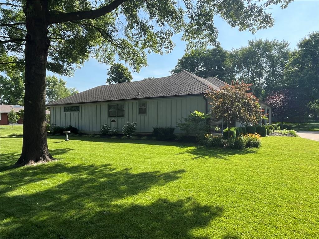 Welcome home to this beautifully maintained and continually updated 3-bedroom, 2+ bath ranch offering over 2,000 square feet of comfortable living space with minimal steps for easy accessibility. Inside, you’ll find crown molding throughout and stunning birch hardwood plank flooring that adds warmth and timeless style. The well-designed layout includes a spacious primary suite featuring two closets, one being a walk-in with exceptional storage, and a dedicated dressing area. The spacious kitchen features an inviting eating area, plenty of cabinets, and a walk-in pantry, opening to a cozy family room with a fireplace—ideal for unwinding at the end of the day. A formal living and dining area provides the perfect setting for larger family gatherings and special occasions. The partially finished basement expands your living and entertaining options with a built-in bar—perfect for gatherings or relaxing at home. An oversized garage provides ample room for vehicles, storage, or hobbies. The home has been thoughtfully cared for, with all appliances included—highlighted by a newer refrigerator—making it truly move-in ready. Outside, the circular driveway, lush landscaping, and full sprinkler system (front and back) create striking curb appeal. Enjoy outdoor living on the brick paver patio, surrounded by a classic wrought iron fence. This home offers the ideal blend of space, updates, and charm—ready to welcome its next owner.
