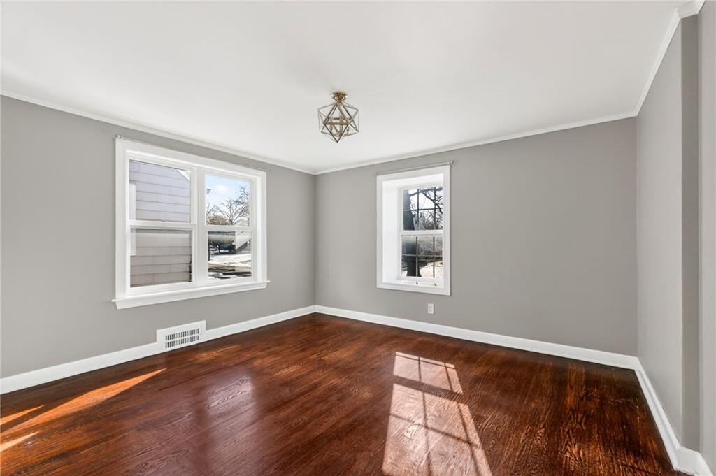 This charming 2-story home built in 1940 exudes character, blending historic details with thoughtful modern updates. The inviting, picturesque front porch welcomes you into a spacious family room filled with natural light, featuring a wood-burning fireplace, built-in bookshelves, and access to an enclosed side porch. A large formal dining room offers the perfect setting for gatherings, while the updated kitchen impresses with granite countertops, stainless steel appliances, soft-close cabinets and drawers, and a pantry. A cozy eat-in breakfast nook with built-ins adds even more charm. Gorgeous hardwood flooring, textured ceilings, and updated light fixtures run throughout. The primary bedroom features double closets, a full bath, and access to the roof deck. Secondary bedrooms are generous in size with ample closet space. The finished lower level offers a fun, spacious rec room complete with a wet bar and built-ins—ideal for entertaining or relaxing. Enjoy outdoor living in the manicured, fenced backyard with a patio and stone paver walkway. The expanded 2-car garage provides extra space, plus there’s an extra-wide private driveway. Major updates include roof, furnace, hot water heater, Hardie Board siding, Andersen thermal windows, and more. Prime location with convenient access to The Country Club Plaza, Brookside, and all the amenities you love. Don’t miss this one—it’s full of charm, space, and style!