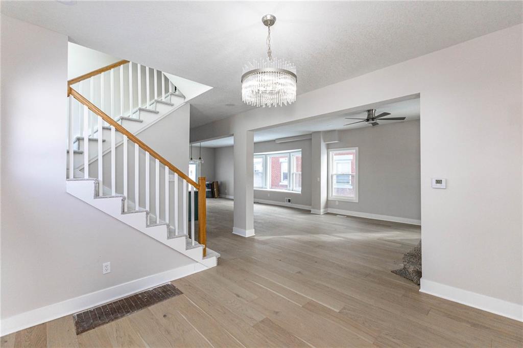 Beautiful Valentine neighborhood 5-bedroom, 3.1-bath fully remodeled home featuring bright, open-concept main-floor living. The spacious family room flows seamlessly into the kitchen and dining area, perfect for everyday living and entertaining. The kitchen showcases brand-new cabinetry, quartz countertops, and a gas range. A convenient half bath is located on the main level. The second floor offers a large primary bedroom with a walk-in closet and a stunning en-suite bath featuring tiled floors, a tiled shower, and double vanities. Two additional bedrooms, a full bath, and a laundry room complete the second level. The third floor includes bedrooms four and five along with a third full bath, providing flexible space for guests, offices, or additional living needs. Enjoy a private driveway with extra parking at the rear of the home. A must-see property offering modern finishes, space, and comfort throughout.
