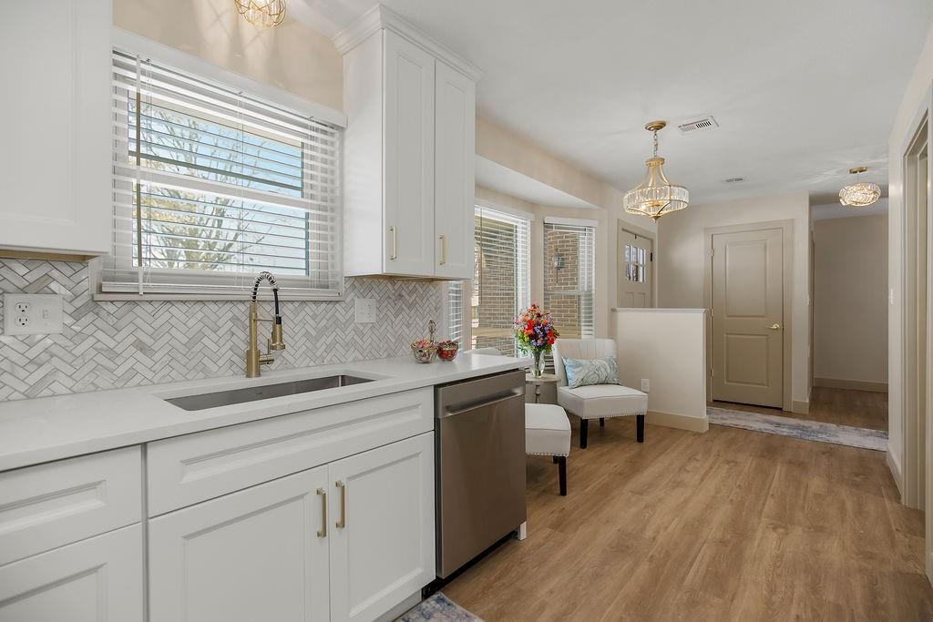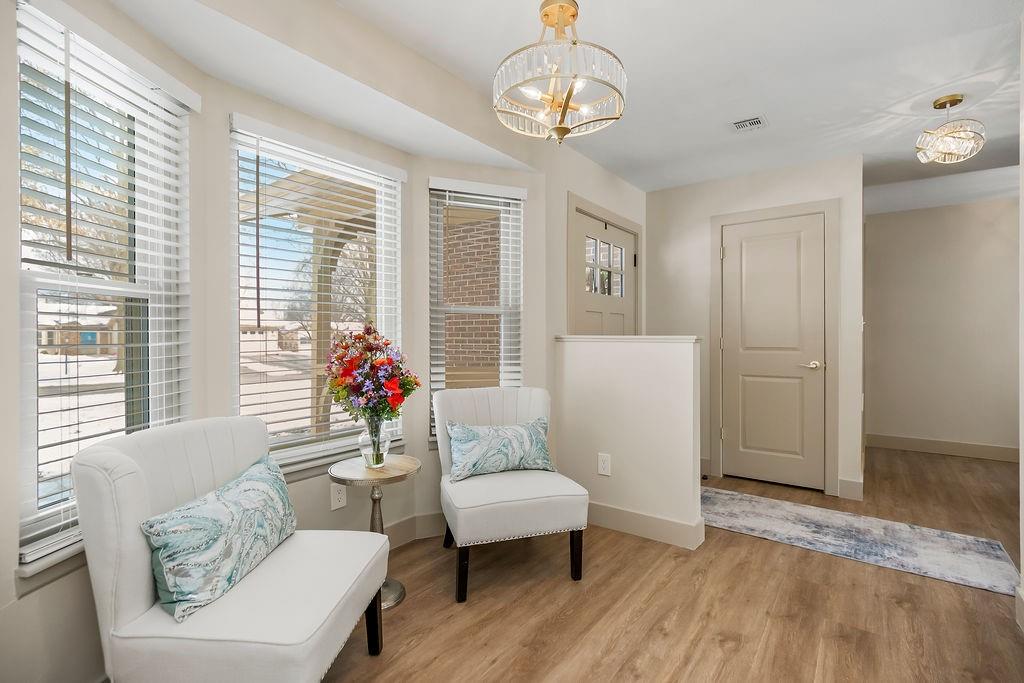 Newly remodeled garden home in sought-after Foxwood Springs 55+ community! This 2BR/2BA home offers 1,891 SF with office, four-season sunroom, and 1-car garage. Completely updated with new kitchen cabinets, marble tile backsplash, quartz countertops, stainless appliances, new LVP flooring and carpet w/ 8-lb pad. Features include new lighting and added can lights, 2-panel interior doors, brushed-gold hardware, 5" base trim, faux-wood blinds, built-in dining buffet, updated baths with quartz vanities and glass shower doors, fresh interior paint, textured ceilings (popcorn removed), new landscaping, and exterior door. HVAC, windows, humidifier, and hot water heater less than 5 years old. Move-in ready! Enjoy maintenance-provided living with HOA services that include 24-hour security, emergency response, lawn care, snow removal, trash, exterior and interior maintenance, and utilities (water/sewer). A one-time $3,000 access fee provides use of community amenities including indoor pool, fitness center, library, lounges, meeting rooms, billiards, shuffleboard, garden plots, greenhouse, picnic area, and on-site dining, with optional housekeeping and transportation services. Experience the perfect blend of independence and community—truly a wonderful place to call home.