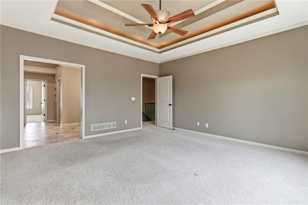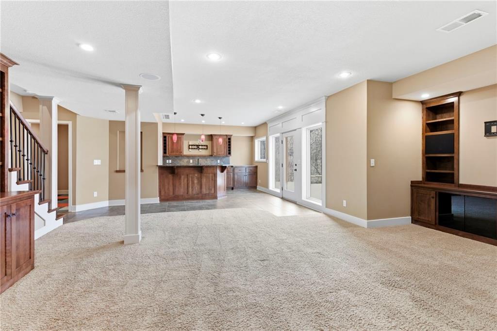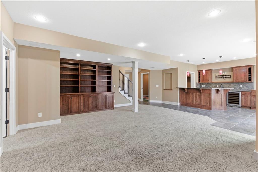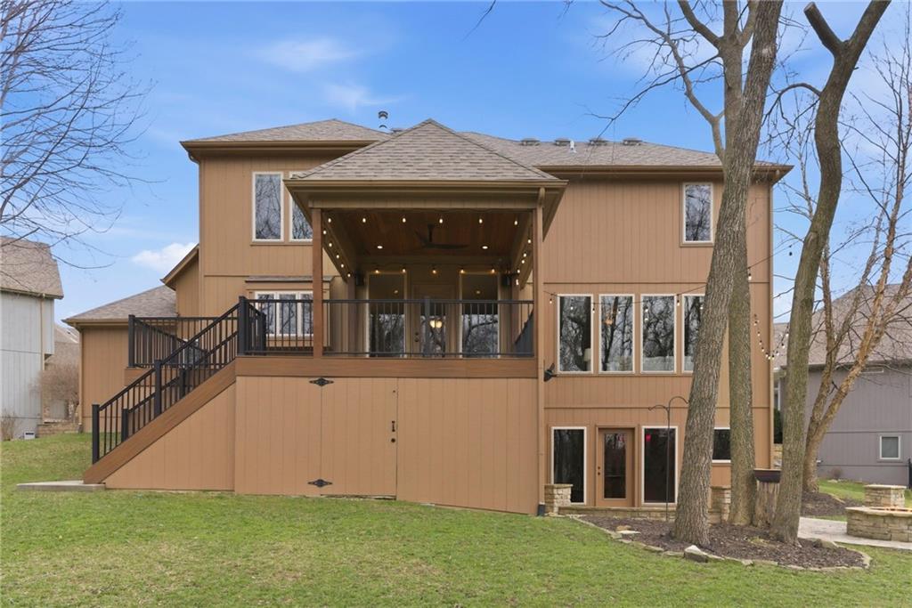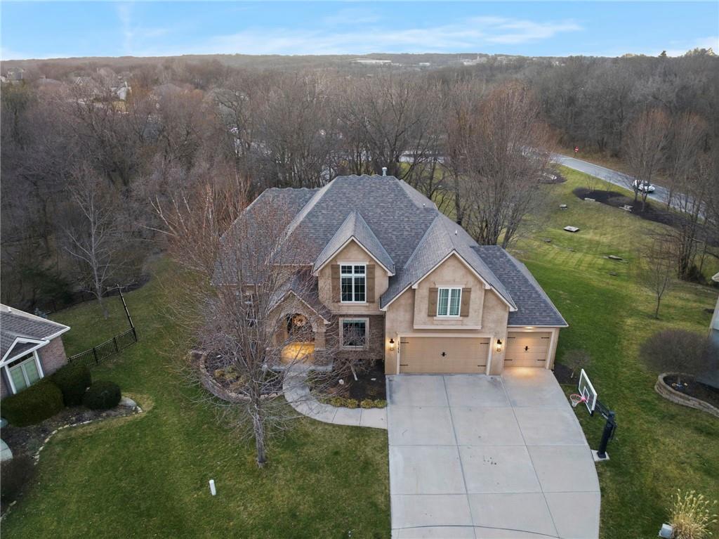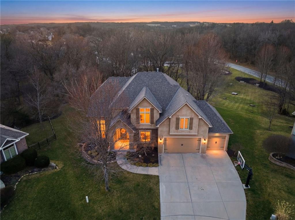 Welcome to this stunning former model home in the sought-after Thousand Oaks subdivision. Crafted by Shawn Land Builders & meticulously maintained by the original owners for nearly 20 years, this refined 4-bedroom, 4.5-bath residence offers just under 4300 sq. ft. of brilliantly designed space. Its oversized lot at the end of a cul-de-sac backs to protected green space, with mature trees surrounding the backyard to provide privacy and a serene setting. From the grand two-story foyer to the expansive lower level primed for entertaining, every detail reflects exceptional living. Highlights include a stylish office, a formal dining room, and a gorgeous living room complemented by a gas fireplace with a stone facade, built-ins, and picturesque windows framing serene views. The kitchen is beautifully appointed with a substantial island, granite countertops, custom cabinetry, GE appliances, a walk-in pantry, & a bright breakfast room. Just beyond, a covered deck becomes an inviting spot for coffee or to unwind with dinner and drinks. Upstairs, the primary suite impresses with double-tray ceilings, a spa-like bath with a jetted tub & shower, & a giant walk-in closet. One secondary bedroom has a private ensuite, while the other two share a Jack-and-Jill bath. Downstairs is an entertainer’s dream, featuring a full wet bar with beverage cooler and fridge hookup, microwave, dishwasher, a huge recreational area, 2 bonus rooms, full bath & storage. Outside, a sensational stone patio, bench, and wood-burning fire pit await quiet evenings under the stars. A 3-car garage has an organization system and a utility sink. Plus, a brand-new roof & 1-year Home Warranty adds peace of mind. Neighborhood amenities encompass scenic lakes, trails, pools, clubhouse, playgrounds, tennis courts, a swim team & social events. With luxury, comfort, and a prime location near Parkville’s shops, dining, entertainment, and top-rated Park Hill schools, this designer home has it all!