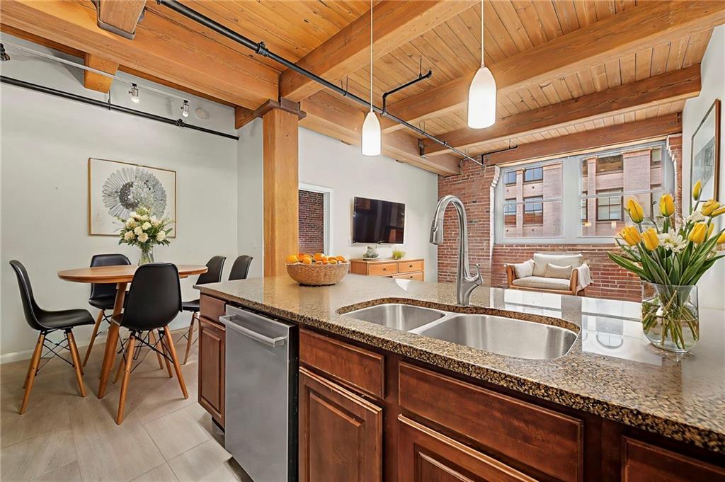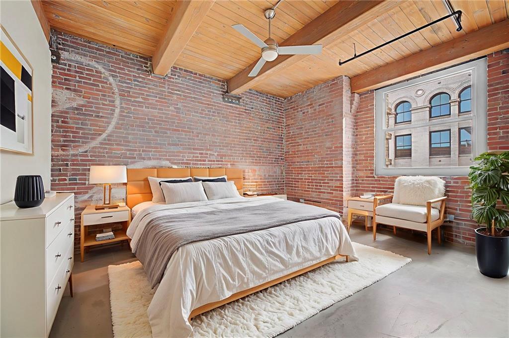 Live at the intersection of history, flexibility, and city life in this light-filled corner loft at Fountains on Broadway. Located in the heart of Kansas City’s Historic Garment District, this 2-bedroom, 2-bath residence offers classic warehouse character paired with a layout designed for modern living. Exposed brick walls, heavy timber beams, polished concrete floors, and soaring ceilings create an authentic loft atmosphere, while expansive east-facing windows fill the spaces with natural light throughout the day. Renovated in 2017, the open layout flows seamlessly into a versatile bonus space—perfect for a home office, dining area, den, or creative studio rarely found in comparable lofts. Both bedrooms are fully enclosed to the ceiling, providing enhanced privacy while preserving the authentic loft aesthetic. The kitchen is designed for everyday living and entertaining, featuring granite countertops, a gas range, and ample cabinetry. HOA dues include water, sewer, trash, gas, and building insurance—leaving electricity as the primary utility expense. Parking options are available on the street and for lease in nearby garages. All appliances, including the in-unit washer and dryer convey—making this home ready for immediate occupancy! Life at the Fountains on Broadway extends well beyond your front door. Residents enjoy a boutique 45-unit community with secure access, two elevators, fitness center, theater room, clubhouse with full kitchen, and a welcoming courtyard ideal for gathering. Step outside and you’re moments from the River Market, local restaurants, shops, and dog parks with the streetcar nearby offering easy access to downtown, Crossroads, Union Station, and beyond. Highway access is quick and effortless just a couple blocks away, connecting you to the entire metro. Whether you’re working from home, entertaining friends, or exploring the city, this home delivers the true work-live-play lifestyle that downtown Kansas City is known for.