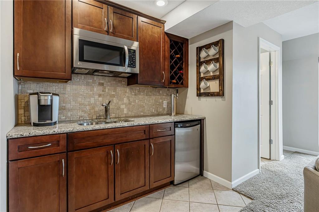 This stunning 3-bedroom, 2.5-bath split-level home is truly move-in ready and shows like new. Thoughtfully updated, it blends modern finishes with functional living spaces—inside and out. The heart of the home is the fully updated kitchen, featuring granite countertops and sink, double ovens, pendant lighting, and updated dinette lighting—perfect for everyday living and entertaining. Throughout the home, you’ll find craftsman-style window trim, added windows that flood the space with natural light, and tasteful details such as shiplap accents in the hearth room/dining area. The fireplace is a showstopper, wrapped in stone all the way to the ceiling. Brand-new carpet (2026) adds a fresh, comfortable feel throughout the main living spaces. The finished basement offers exceptional versatility, featuring a wet bar complete with a beer tap tower and refrigerator, a convenient half bath, surround sound wiring, and a dedicated office or bonus space. Outdoor living is just as impressive. Enjoy two distinct outdoor spaces, including a covered patio with lighting and a newly stained deck and fence. The landscaped yard includes a full sprinkler system and an in-ground basketball goal, making it perfect for both relaxation and play. Major updates provide peace of mind, including new energy-efficient windows with transferable warranty (2023), enlarged 70-gallon hot water heater (2023), lifted driveway with transferable warranty (2023), a roof replacement with updated venting (2015), and updated bathrooms—including a refreshed kids’ bath with added window and new tile in the primary bath. Fresh exterior paint (2018) and numerous smart WiFi switches throughout the home add both curb appeal and modern convenience. This home is a rare find—beautifully maintained and ready for its next owner to enjoy.