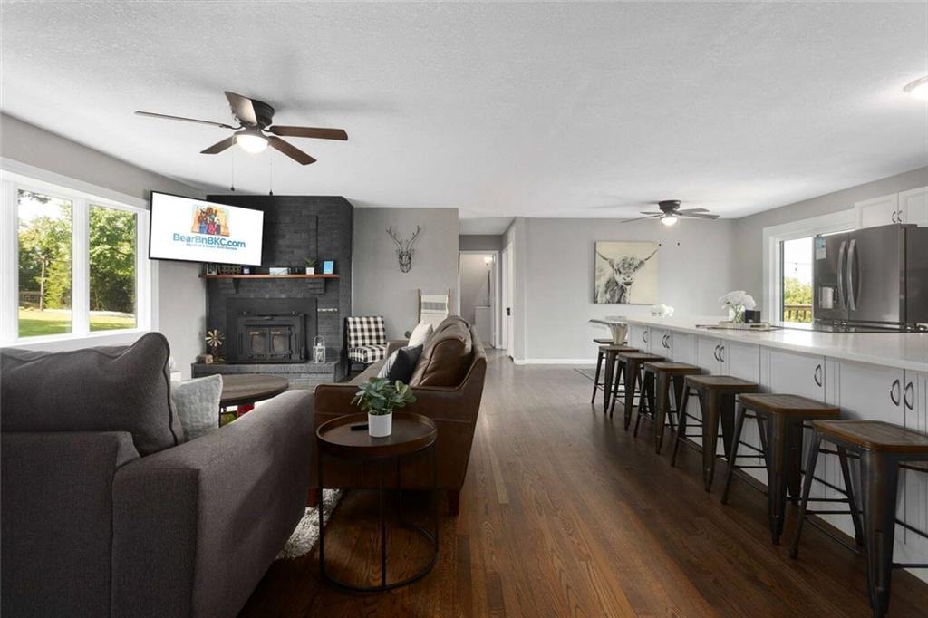 One of a kind property located at the end of a dead end road! This is a rare opportunity to own a picturesque fenced in 20 acre farm with a huge fully stocked 4 1/2 acre pond/lake. The home on the property is a fully renovated 4 bedroom 1.5 bath ranch with a 2 car garage and a full unfinished walkout basement(great for adding more living space, bathroom and bedrooms). The home has a modern open floorplan, updated eat in kitchen with huge quartz island and stainless steel appliances, newer HVAC, newer septic tank, updated electrical, refinished hardwood floors throughout, walk out to your back deck or covered screened in porch overlooking nearly the entire fenced in 20 acres as well as the entire pond! Good sized 6-8 stall barn, large 2 garage door Morton building for all of your toys! Additional pastures located on the southwest corner of the property for small livestock. The pond could be great for duck hunting as it sees a good amount of water fowl throughout the year. The view at this property is good enough that it could also be great for events like weddings etc. 10 minutes from downtown Belton, 10 minutes east of Louisburg and just down the road from the town of Cleveland Missouri, this property is conveniently located in the country but with all of the amenities you need! The property has been used as a short term rental since October 1st and has had great results! It has earned the Guest Favorite designation and has had all 5 STAR reviews since it was launched. As the seasons change we anticipate bookings to ramp up quite a bit going into the spring and summer months! With the upcoming World Cup being hosted in Kansas City the property will have a very HIGH earning potential this summer during the months of June and July. For a small additional cost the Seller is willing to sell the home FULLY FURNISHED with short term rental management in place so you can take advantage of the possible high dollar bookings this summer during the World Cup!