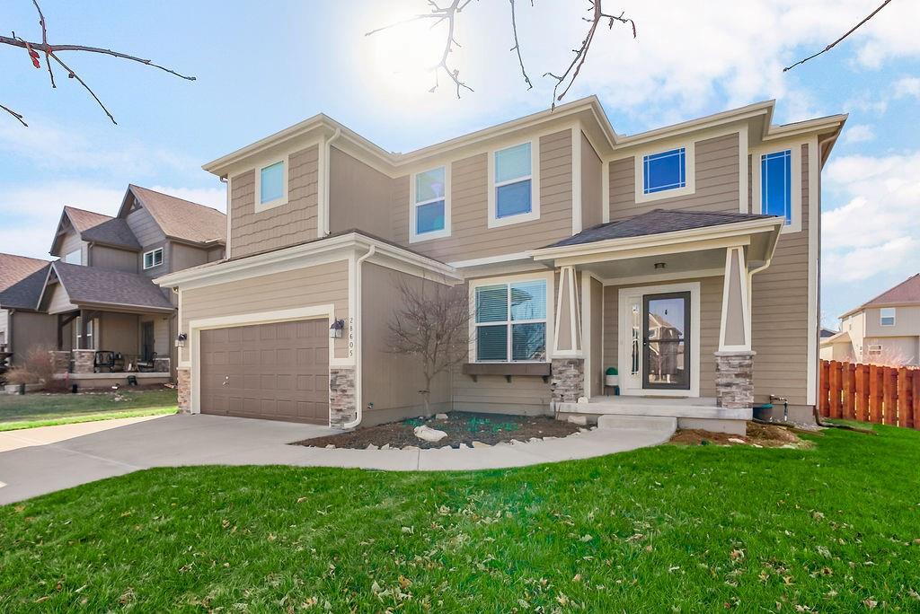 Immaculately maintained 4-bedroom, 3.5-bath home only 10 years old and truly shows like new! Fresh interior and exterior paint completed within the last few years adds to the crisp, move-in-ready appeal. The open floor plan features gorgeous hardwood floors throughout the main level and offers both a formal living room or flexible space, plus a spacious family room with fireplace that flows seamlessly into the dining area and kitchen—perfect for everyday living and entertaining. The well-designed kitchen includes a large walk-in pantry, gas range and newer dishwasher and microwave (within the last 4 years). A convenient drop zone just inside the garage entry adds everyday functionality. Major updates include a new A/C condenser and sump pump in 2025. The basement includes an egress window and offers an incredible amount of storage or the perfect opportunity for future finishing. Outside, enjoy beautifully landscaped grounds with low-maintenance perennials, a fully fenced backyard, and an in-ground sprinkler system. This home has been lovingly cared for and offers the ideal blend of style, comfort, and modern updates.