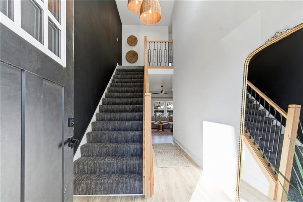 Better than new construction — this stunning 3-year-old townhome offers all the benefits of new build without the wait. A dramatic two-story entry welcomes you with designer iron spindle staircase and curated light fixtures. The open main floor flows seamlessly from the chef's kitchen to dining and living, perfect for entertaining. The kitchen features a large island, walk-in pantry, stainless steel appliances, designer backsplash, and updated hardware. Commercial-grade luxury vinyl plank flooring, matte black hardware, and granite countertops throughout give this home a cohesive, high-end feel. The primary suite is a true retreat with floor-to-ceiling tiled shower, double vanities, under-mount sinks, and an oversized walk-in closet connected directly to the laundry room. The large unfinished basement offers endless storage and is ready for your future vision. Outside, enjoy a brand new deck, a spacious treed backyard, and a park with playground and picnic area right across the street. Easy access to I-35 and I-635 makes for a smooth commute anywhere in the metro.
