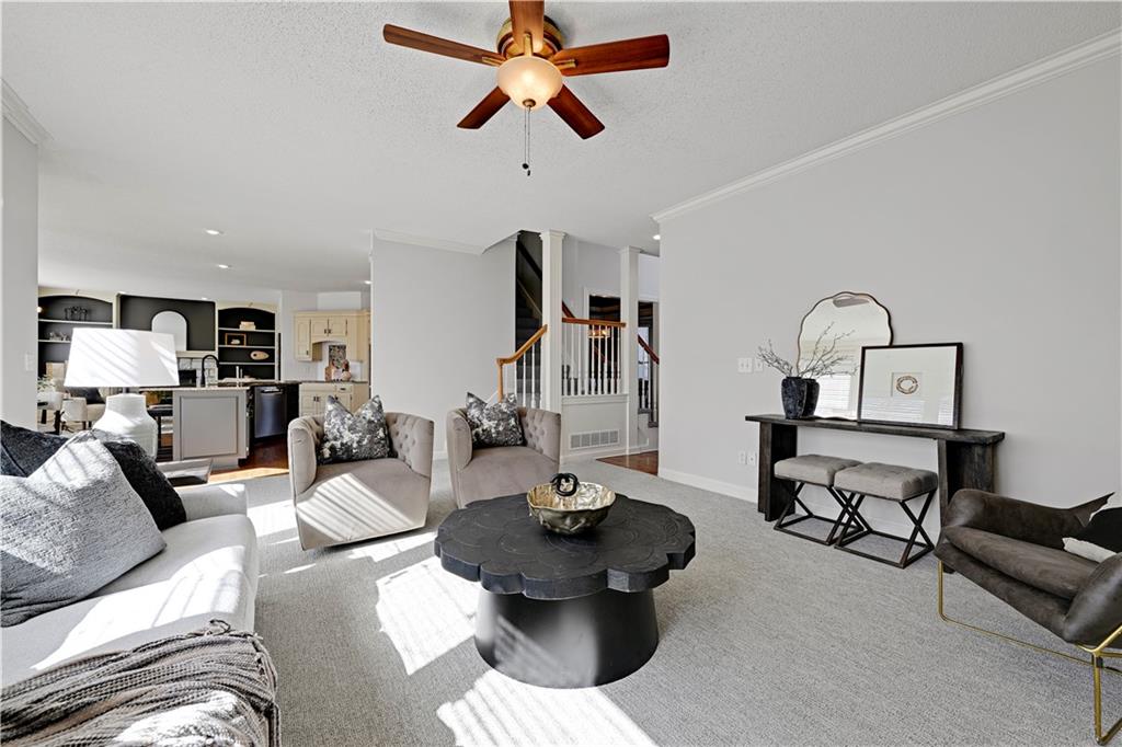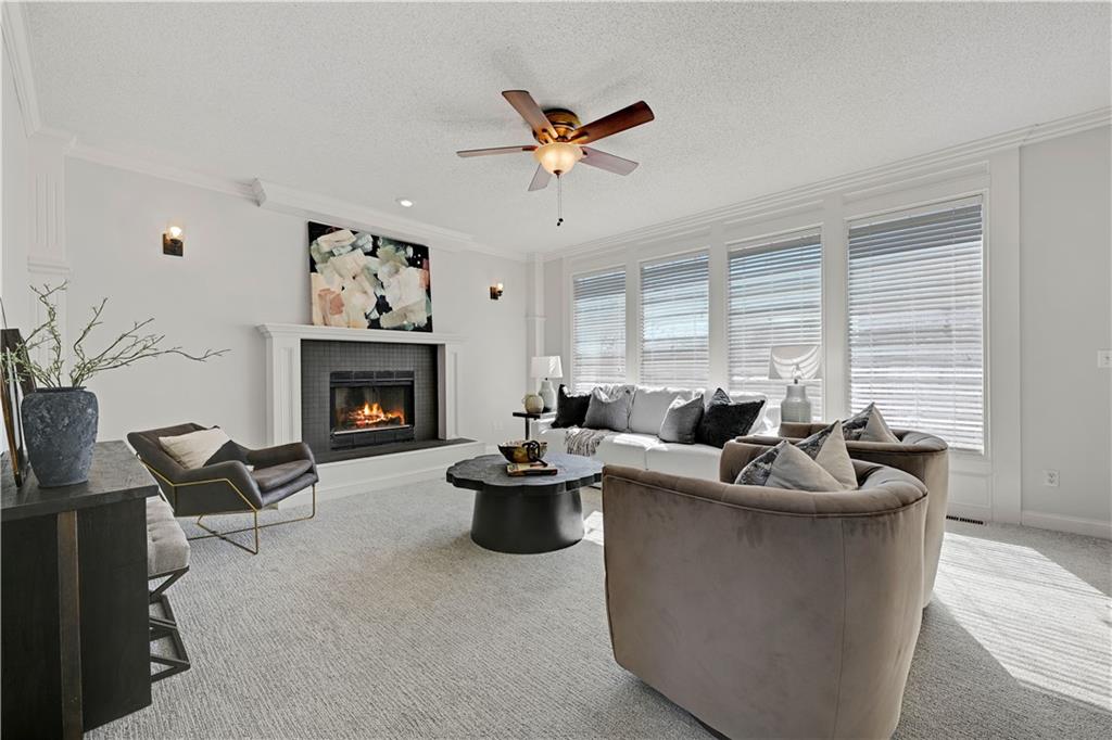 The perfect Two Story, new carpet main floor, up the stairs, and 2nd Story, some new paint, stone fireplace in hearth room, office main floor, formal dining. Four bedrooms and 3 full baths on second story, finished walkout lower level with tons of space and a half bath. Walkout to large backyard that's partially fenced, three car garage. Roof is young, new dishwasher, eat in kitchen, new oven and microwave, hardwoods, new exterior paint, laundry main, wall of windows in hearth room and kitchen. Large Primary bedroom with sitting room. New garage door on far west will be put in before closing. Don't miss this opportunity. You'll love it!