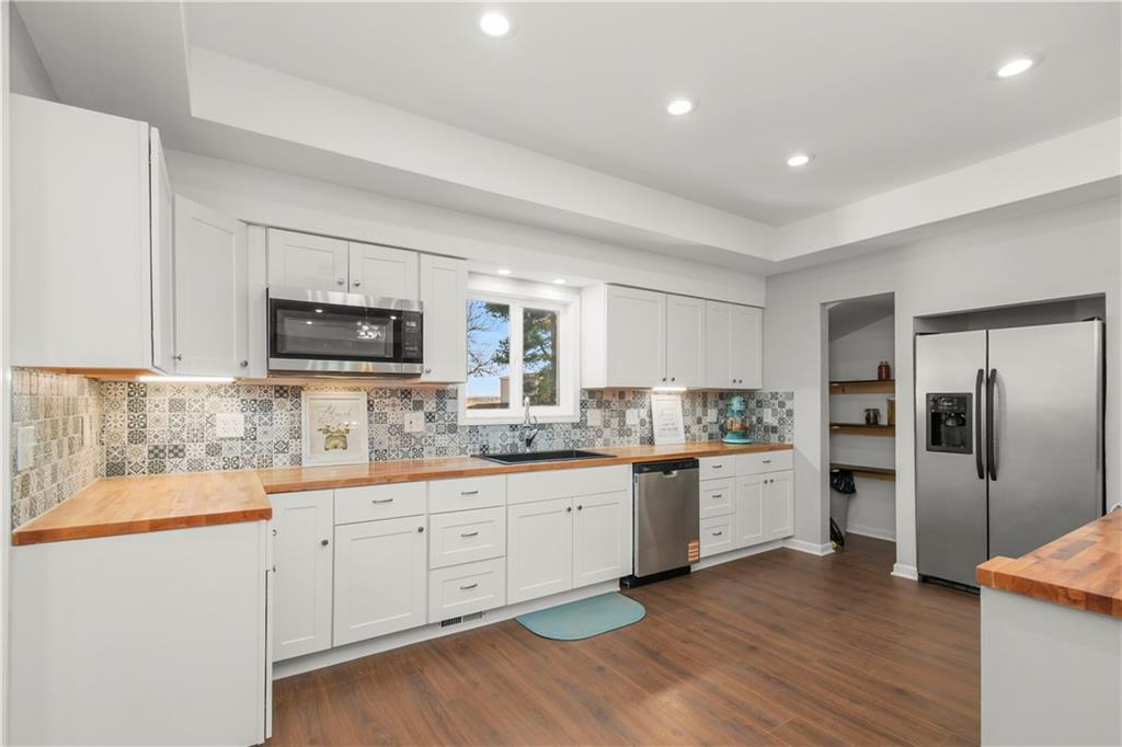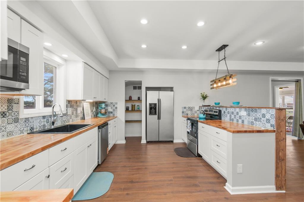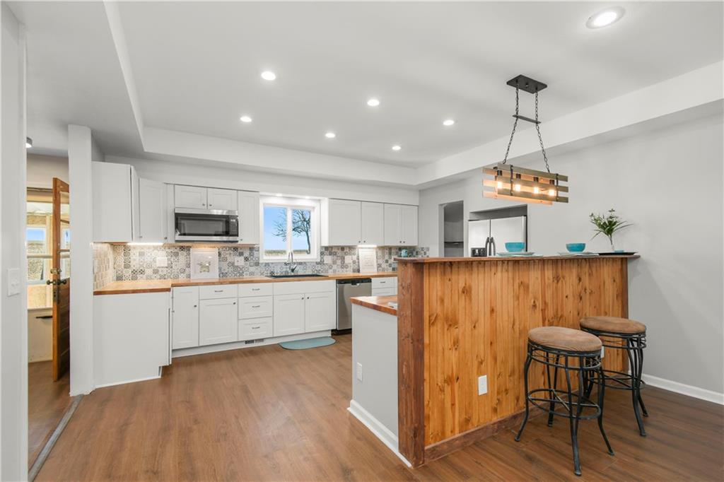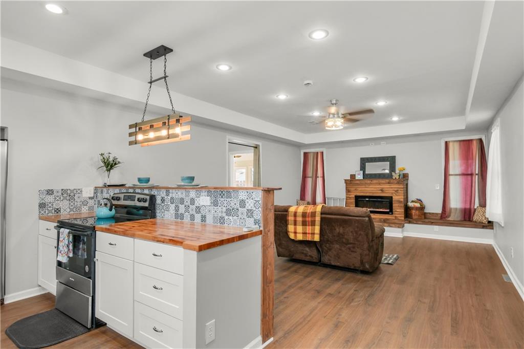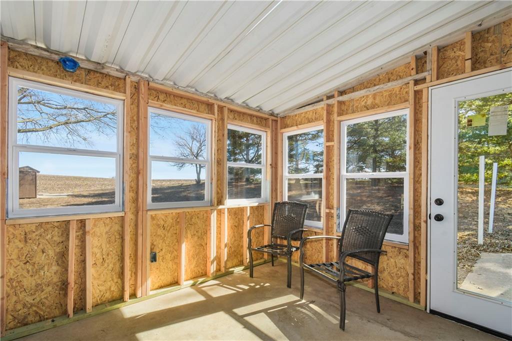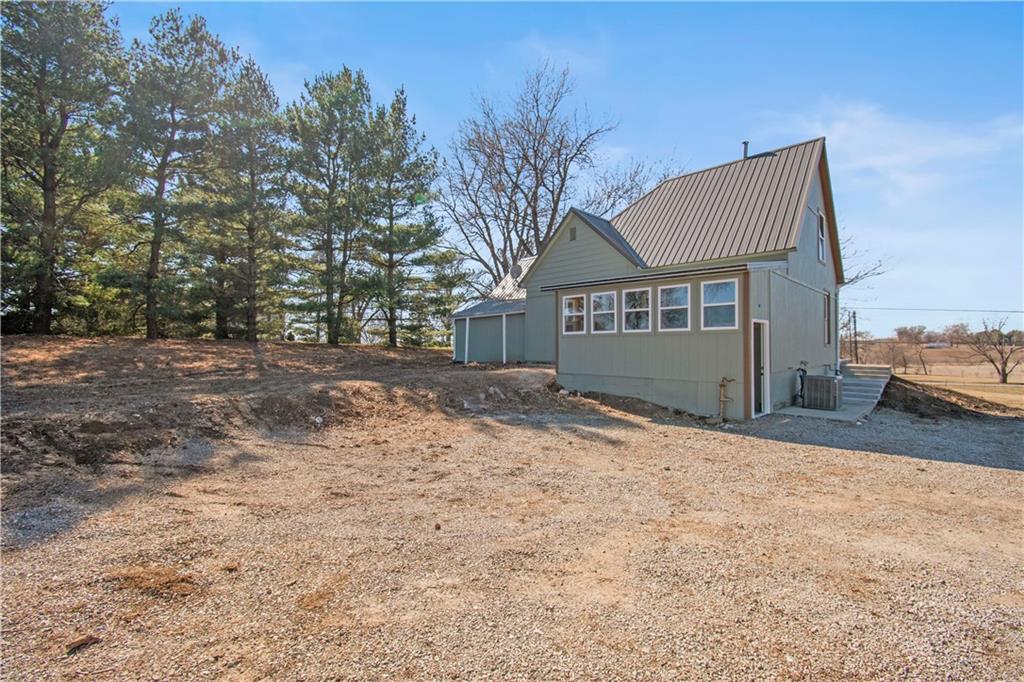 Beautiful countryside home in Waverly, Missouri, set on just over one acre with generous spacing between neighbors and peaceful surroundings. This home was fully remodeled for the current owners, and a change in plans means their carefully finished home is now available. The exterior features brand-new siding, a durable metal roof, and a large front porch, part of which is covered, creating the perfect place to relax and enjoy the quiet setting. An enclosed sunroom at the front of the home offers additional living space filled with natural light and year-round usability. Inside, the home has been completely updated with fresh paint, vinyl plank flooring, restored hardwood floors, and tile throughout. The spacious living room offers high ceilings, recessed lighting, built-in storage, and an electric fireplace that creates a warm focal point. The kitchen features butcher block countertops, stainless steel appliances, and a built-in dishwasher. The main level includes a primary bedroom with a private ensuite bath and walk-in closet, along with a second main-level bedroom showcasing restored hardwood floors and a full bathroom just outside the room. An additional enclosed sunroom off the back of the home provides even more flexible living space and overlooks the backyard. The second level offers one large bedroom, a full bathroom, and a bonus area that would be perfect for a small office or gaming space, complete with a window and direct bathroom access. The backyard backs up to open farm ground and includes a storage shed, providing privacy and room to enjoy the outdoors. With 3 bedrooms and 3 full bathrooms total, this home combines space, updates, and a peaceful country setting that is increasingly hard to find. Sqft is estimated, buyer and buyer agent to verify.