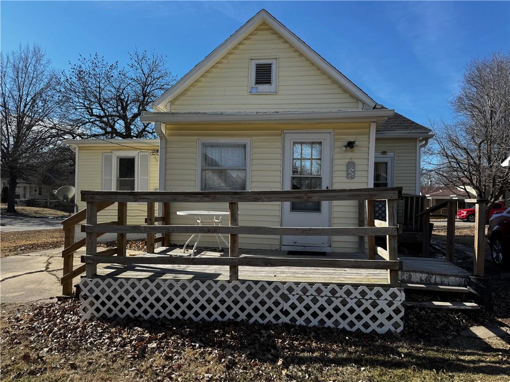 Well-kept bungalow on a corner lot. New front porch. Newer kitchen cabinets and countertops and updated flooring and vanity and shower surround. Nice level lot with a 1 car detached garage. This would be a great starter home or place for your student.