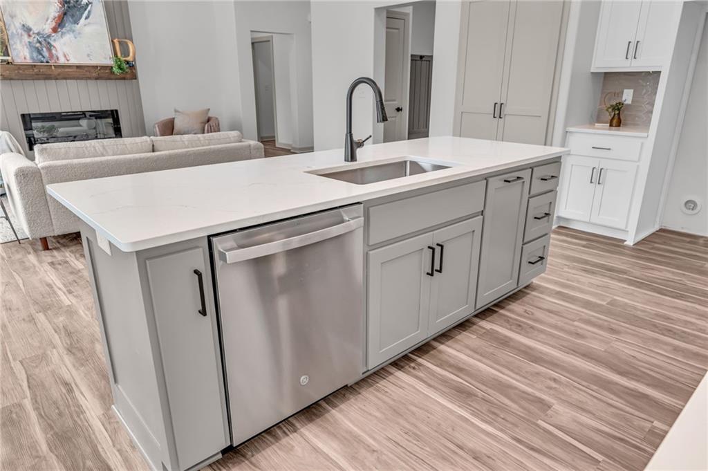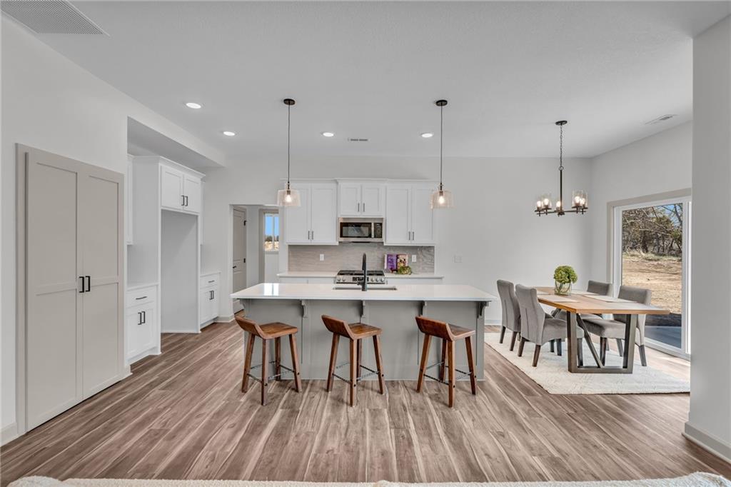 Address is NOT mapped, see directions!!! The Bridgeport floorplan built by Drippé Homes. Open concept daylight basement with tons of natural light! Kitchen furnished with stainless appliances, gas range, microwave, quartz countertops, large island with oversized sink and spacious walk in pantry. Primary opposite other bedrooms. Ensuite features double vanity, tiled walk-in shower, private water closet, MASSIVE closet with window bench and pass through to laundry. Mudroom off garage with boot bench. Cozy up to the fireplace in the living room or enjoy the sunrise from the covered back patio. Home backs to tree-line providing ultimate privacy. Three car garage provides plenty of storage. Directions: From US-56 E and E High Street, Left/North on E High Street, E High Street turns into Rockers Drive, home is on the right on the N side of US-56 E