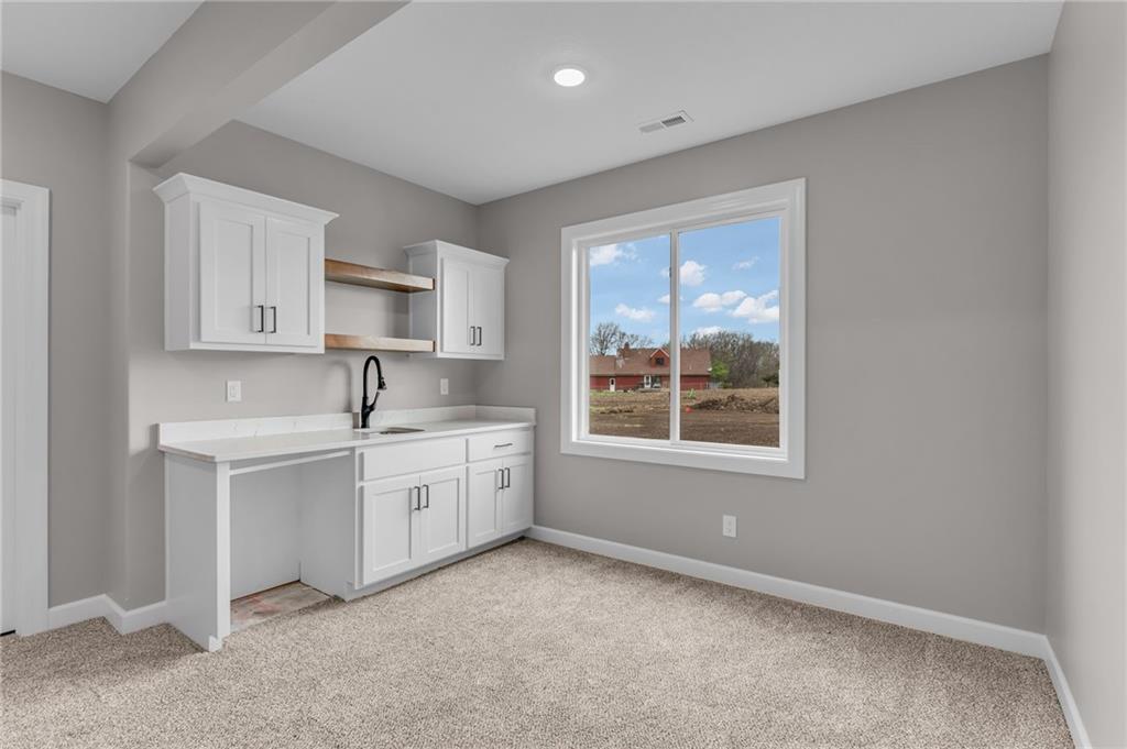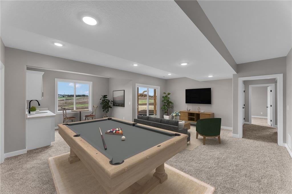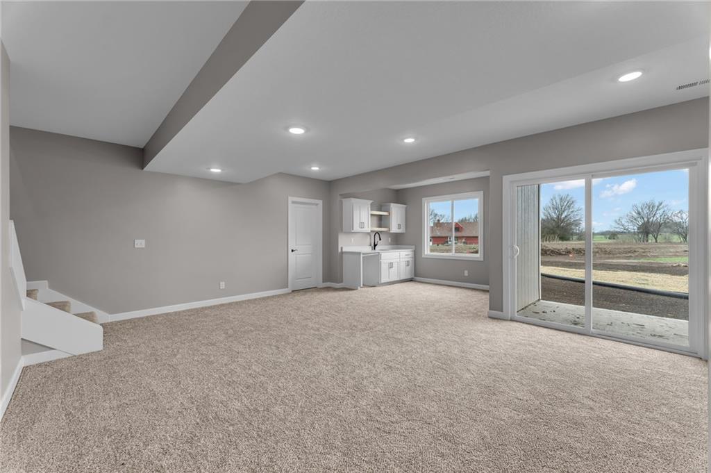 Address is NOT mapped, see directions!!! The Waldron floorplan built by Drippé Homes. Open concept walkout basement with tons of natural light! Kitchen furnished with stainless appliances, gas range, microwave, quartz countertops, large island with oversized sink and spacious walk in pantry. Two bedrooms on main with primary opposite other bedrooms. Ensuite features double vanity, tiled walk-in shower, private water closet and gigantic closet Mudroom/laundry off garage with boot bench. Finished basement with two additional bedrooms and rec room with a wet bar, ready for hosting the next big game. Cozy up to the fireplace in the living room or enjoy the sunset from the covered deck. Home backs to tree-line providing ultimate privacy. TWO unfinished basement storage spaces and three car garage provide plenty of storage. Finished and ready for your personal touch! Photos have been digitally enhanced to add staging and grass. Directions: From US-56 E and E High Street, Left/North on E High Street, E High Street turns into Rockers Drive, West/Left to Glenn Court, home is on the right on the N side of US-56 E