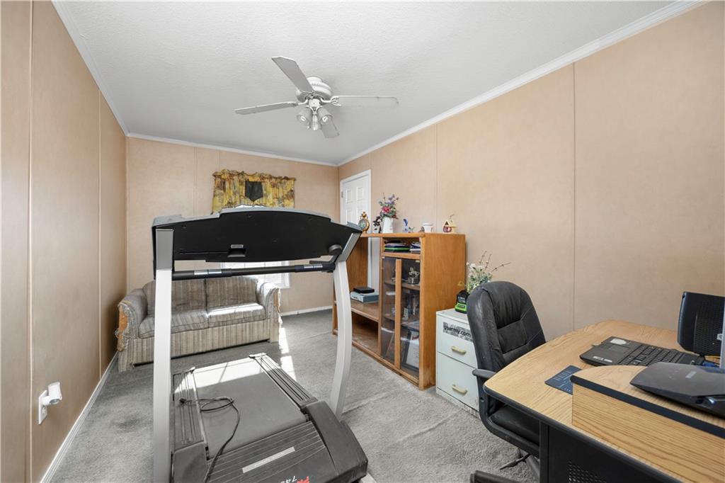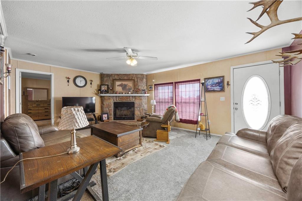 Sometimes all you really want is space, a good view, and a little peace and quiet. This 3-bedroom, 2-bath manufactured home sits on 27± fenced acres just west of Coffeyville with easy access to Hwy 166. The home offers a functional layout for easy living. In the living room you will find a wood-burning fireplace for cold winter nights. The eat-in kitchen has a small island with storage underneath. The primary bedroom has an en suite bathroom featuring a stall shower and jacuzzi tub- perfect for soaking the stress away. The land is fully fenced with a cattle guard by the house and chain-link fencing in the backyard, making it ideal for livestock or pets. A two-car carport and storage shed provide added convenience. The pond is the standout feature—perfect for fishing, relaxing, and enjoying quiet country evenings. The home does need some updates, including hail-damaged siding on the west side and carpet replacement, offering buyers an opportunity to update and add value. A deck in the backyard is ready for repair and personalization. This property offers open pasture, scenic views, and peaceful country living with close proximity to town. Call to schedule a tour today!