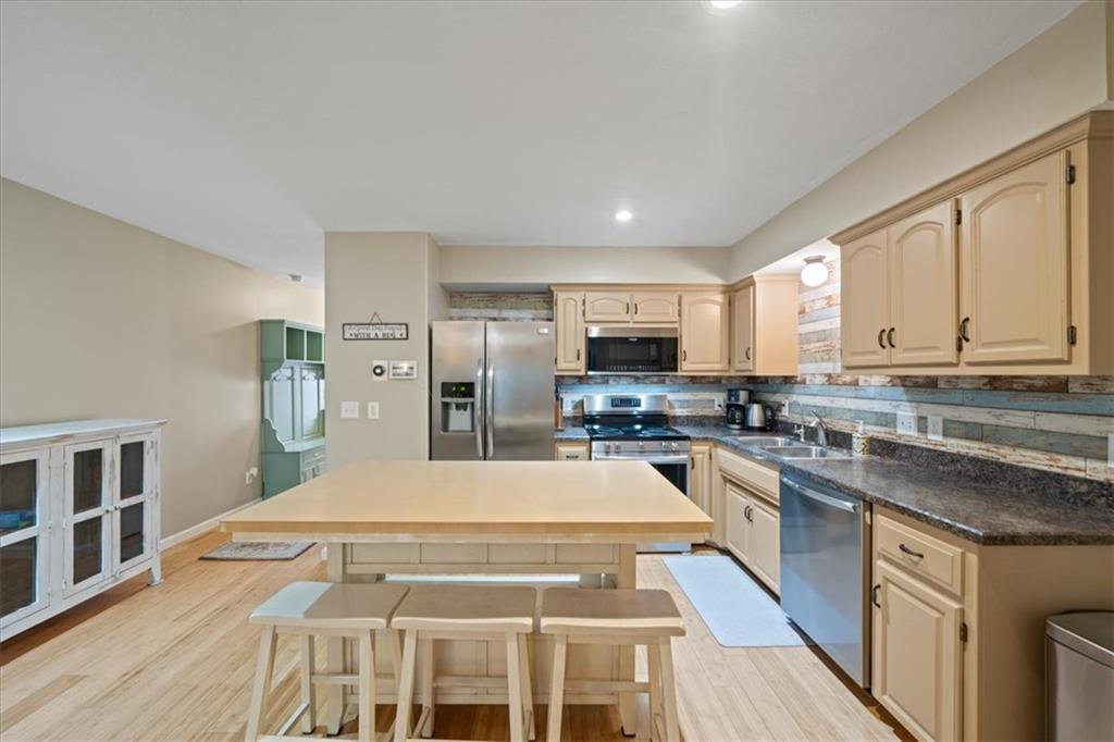 Enjoy the best of both privacy and proximity in this spacious townhome just minutes from the heart of North Kansas City. Step inside to discover warm bamboo floors flowing throughout the main living areas, creating a stylish and durable foundation for everyday living. The open-concept layout seamlessly connects the living room and kitchen, making it perfect for entertaining or relaxing at home. The kitchen features ample cabinetry and generous counter space, and a half bathroom adds to the convenience of the main floor. Upstairs, you’ll find two bedrooms, both with en-suite bathrooms, including a spacious primary suite with excellent closet storage. Each bedroom offers comfortable proportions rarely found at this price point. The unfinished walkout basement provides incredible potential—ready for your finishing touches to create additional living space, a home gym, workshop, or recreation area. It’s even subbed for a bathroom! Step outside to enjoy both a deck and patio, offering multiple outdoor living spaces to relax or entertain. The backyard backs to trees, providing a peaceful, private setting and a beautiful natural backdrop. A low annual HOA takes care of lawn maintenance, giving you more time to enjoy the home and its surroundings without the hassle of exterior upkeep. Located just minutes from the shops and restaurants along Armour Road in North Kansas City and less than 15 minutes to downtown Kansas City, this home offers convenience without sacrificing tranquility. With enviable highway access, commuting anywhere in the metro is quick and easy. Situated in the highly regarded North Kansas City School District, this home truly checks all the boxes—space, location, and opportunity. Don’t miss your chance to make it yours!