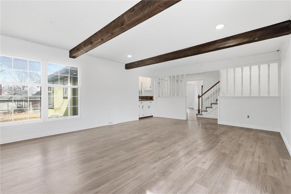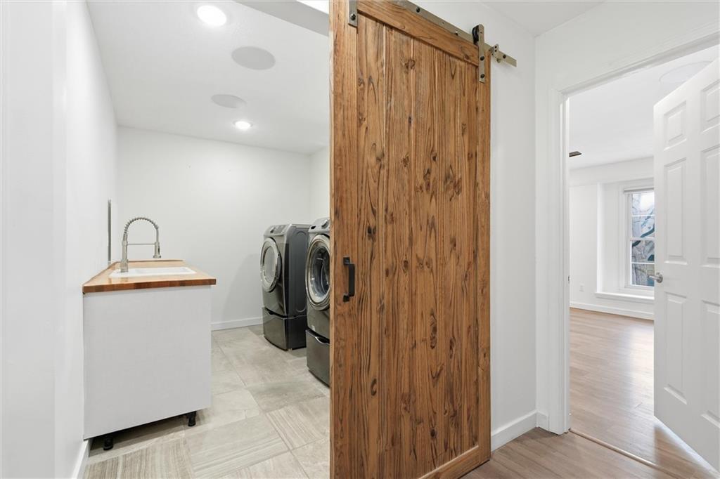 Discover this stunning custom home in the highly sought-after Village of Oakwood, where modern elegance blends seamlessly with timeless charm. This residence has been transformed into a sophisticated, move-in-ready retreat. Tucked at the end of a quiet no-thru street, the home offers exceptional privacy and tranquility. A bold exterior and impressive entry door entry make a striking first impression. Inside, engineered hardwood flooring, fresh white paint, recessed lighting, and updated fixtures create a bright, contemporary atmosphere throughout. The contemporary kitchen is both stylish and functional, featuring ample workspace and storage—plus all appliances stay. A conveniently located walk-in pantry and main-level half bath add everyday practicality. Enjoy the comfort of a main-floor primary suite, complete with a custom vanity, stunning spa-like tiled shower and expansive closet system. A second bedroom on the main level includes its own walk-in closet, and the laundry room offers additional storage with a custom wall cabinet. The updated hallway bathroom maintains the home’s clean, modern aesthetic. Large living room space with views of the backyard plus formal dining space and secondary living room/office space complete the main floor. Upstairs, two additional spacious bedrooms each feature mini-split units for personalized climate control, ensuring year-round comfort. Finished basement adds a great communal space for media area, brand new modern kitchen with center island, separate bar space plus two more bedrooms and full bathroom! Step outside to a beautifully fenced backyard featuring a charming upper stone patio, perfect for entertaining, along with a covered lower patio that offers shade and relaxation on warm summer days. Located within walking distance to Oakwood Manor Elementary and just minutes from local amenities and highway access, this thoughtfully renovated home delivers style, comfort, and convenience in one exceptional package.