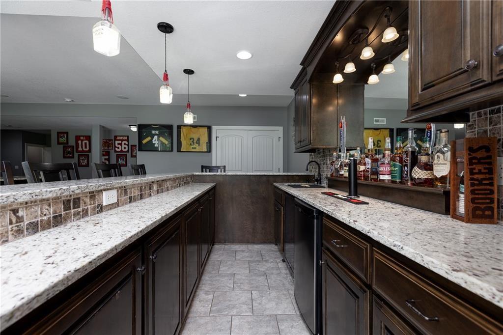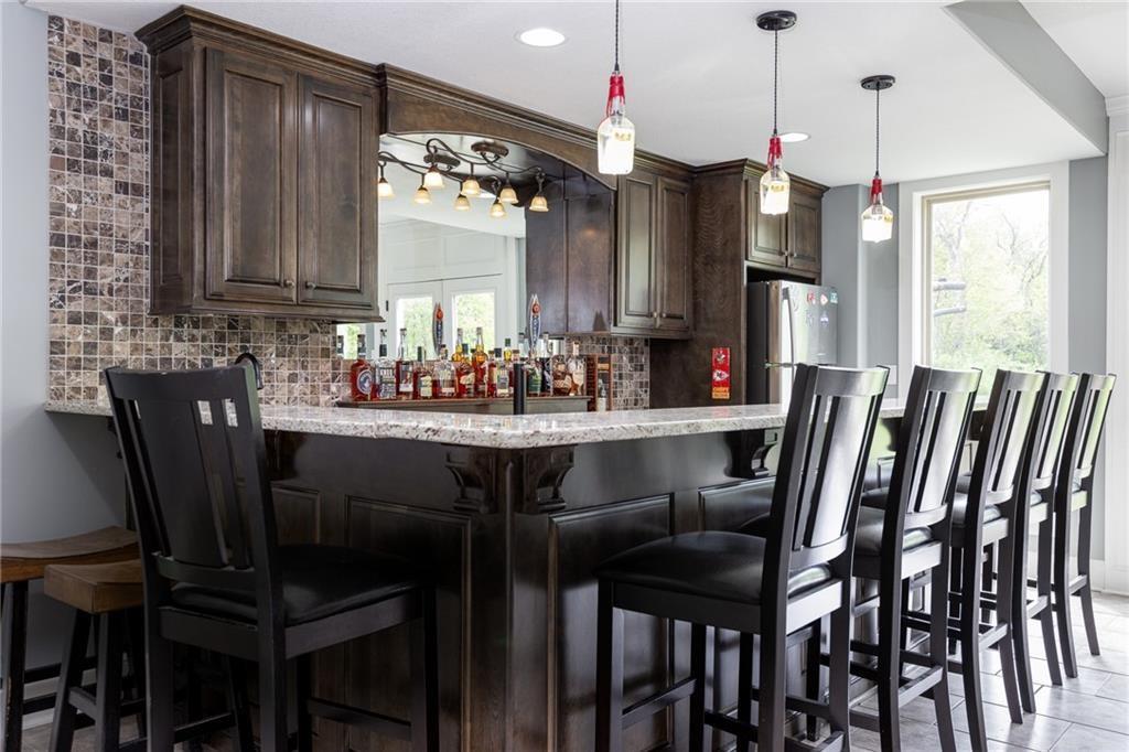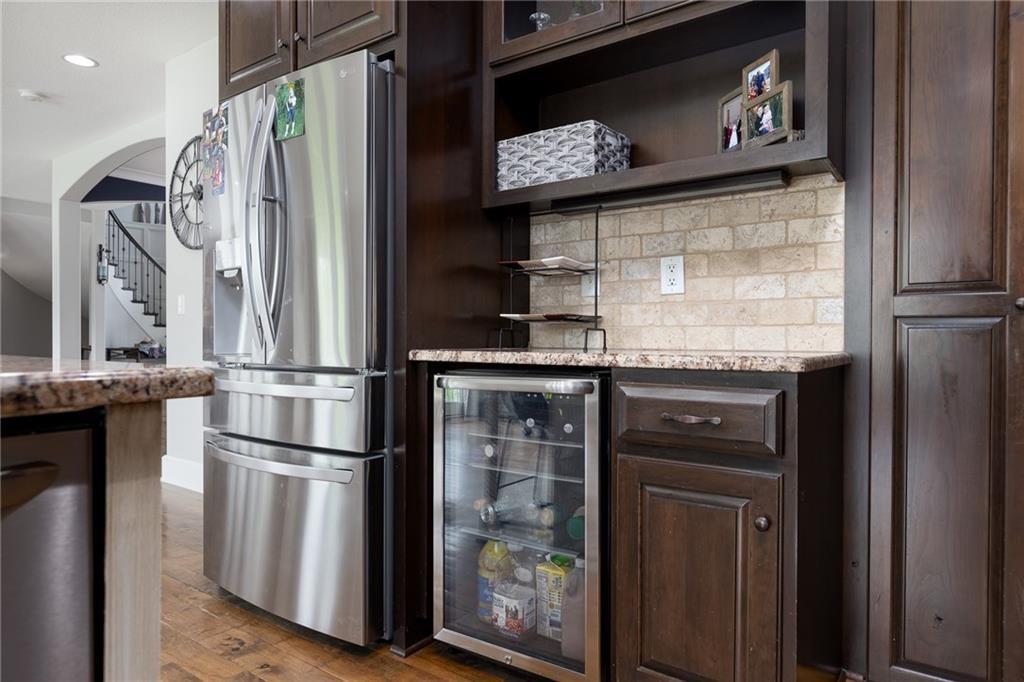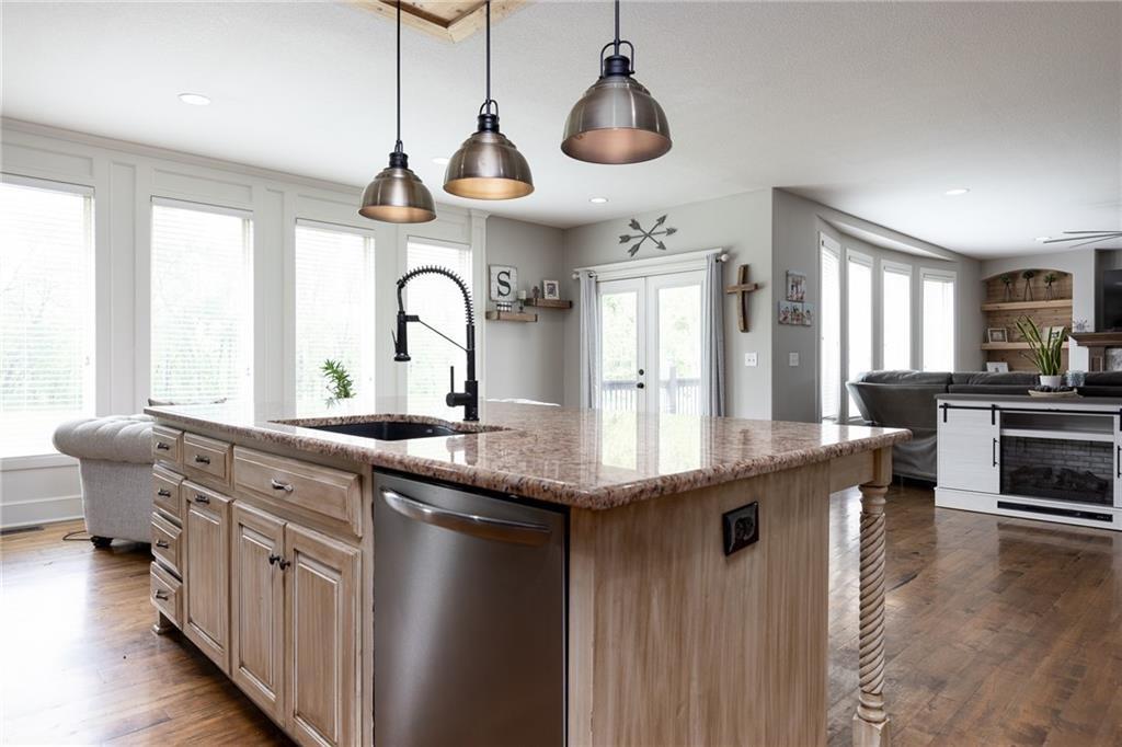 OPEN HOUSE CANCELLED FOR 3/1 DUE TO ILLNESS SELLER IS OFFERING $15,000 in seller paid closing costs!!! Welcome to 13017 Kelli Dr in the Oakbrook subdivision of Kearney. This 5-bedroom, 3.5-bath home sits on 1.25 acres in a cul-de-sac and backs to HOA green space, offering both privacy and room to spread out. The main level features an open layout with hardwood floors, a gas fireplace, and a spacious kitchen with a large island, custom cabinetry, new backsplash and a walk-in pantry with convenient garage access. Upstairs, the primary suite includes a walk-in closet, jetted tub, and separate shower. Additional bedrooms are generously sized. The finished walk-out basement adds flexible living space with a wet bar, full bath, and extra bedroom—ideal for guests or entertaining. Enjoy outdoor living with two decks, including a covered area with ceiling fans, plus a large yard and fire pit. Located in the Kearney School District with easy access to local amenities and highways. Agent/Owner
