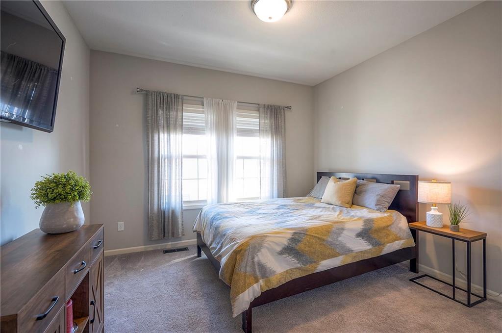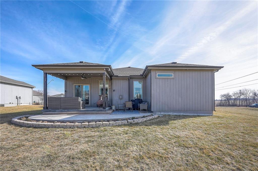 Beautiful ranch in Foxwood Ranch featuring an open floor plan with all 3 bedrooms conveniently located on the main level. The luxury kitchen showcases painted cabinetry, granite countertops, tiled backsplash, wood floors that flow through the kitchen, dining area and great room, plus upgraded brushed nickel plumbing fixtures for a modern touch. Enjoy outdoor living on the 14x10 covered patio with an extended stamped concrete patio, and irrigation system. Maintenance-provided living covers lawn care, fertilizer treatments, sprinkler system maintenance and snow removal. Additional highlights include a 3-car garage and a prime location just 10 minutes to Garmin or I-35, minutes to Sycamore Ridge Golf Course and Hillsdale Lake, and just a few blocks to Wolf Creek Elementary and Spring Hill High School. Community amenities include a state-of-the-art pool, clubhouse, playground and scenic trails — offering comfort, convenience and low-maintenance living all in one. Basement is ready for your design as it includes an egress window and is stubbed for a bathroom.