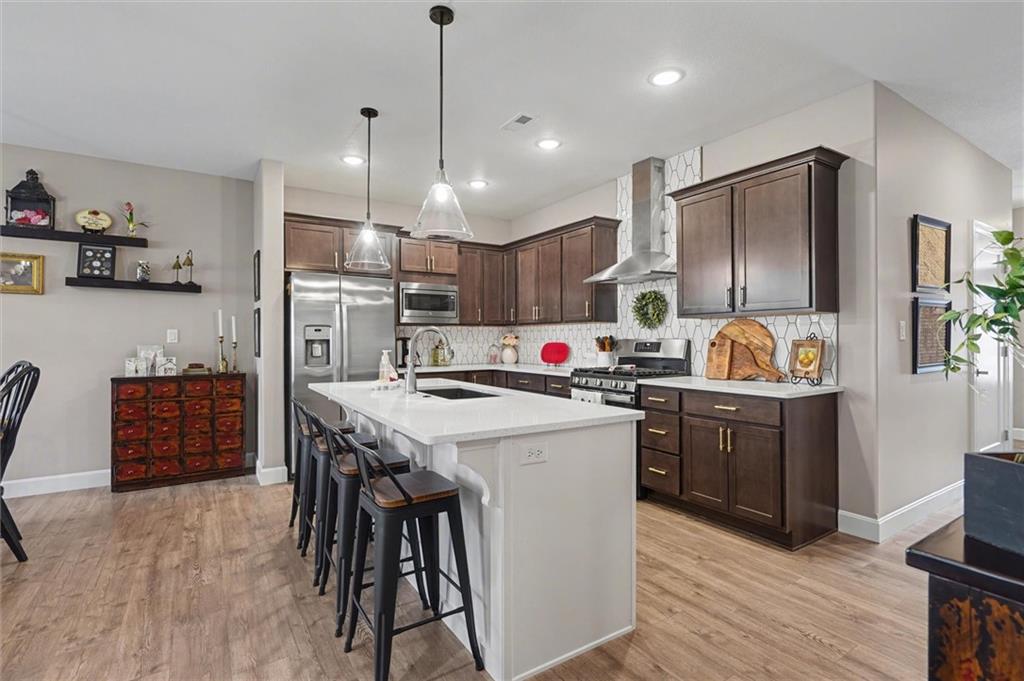 This home still feels new with all the upgrades in popular Hutton Farms. Plantation shutters, gas range, covered patio on the back with rocking chairs greeting you on the front. Drippe Construction created this open concept floor plan with high vaulted ceiling and cross beams. Master closet flows through to the laundry room. Gated community with HOA that covers snow removal of streets, lawn care and sprinkler system. Homeowner responsible for grass inside of the fence.