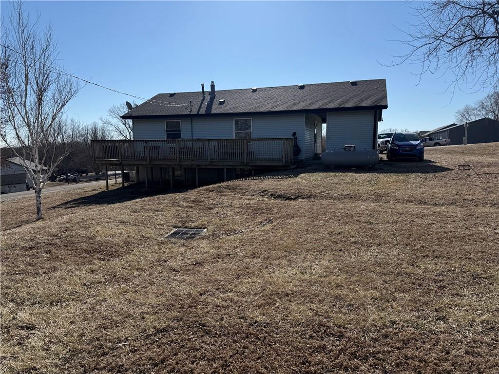 This well maintained ranch - style home features classic brick veneer construction and sits on a spacious 1.3 acre corner lot, offering both privacy and room to enjoy the outdoors. Designed for comfortable singe-level living, the home includes three bedrooms, one full bathroom, and a convenient half bath. A welcoming deck extends from the rear, providing the perfect space for relaxing or entertaining while overlooking the expansive yard. In addition to the home, the property boasts a large detached garage ideal for vehicles, storage, or a workshop, along with a practical lean to for covered parking or equipment storage. With its generous lot size and functional layout, this property blends charm, space, and versatility.