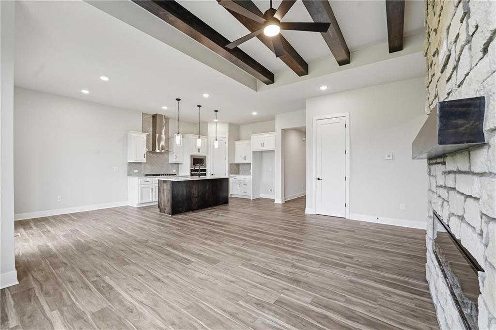 Welcome to the Gonzalez plan by Hakes Brothers Homes, showcasing the striking Modern Prairie elevation and offering 1,835 sq. ft. of thoughtfully designed living space on a desirable daylight basement lot. Step inside to find 8-ft doors throughout the main level, enhancing the open and airy feel of the home. The true gourmet kitchen is designed to impress with quartz countertops, custom cabinetry, stainless steel appliances, and an oversized island perfect for entertaining or everyday living. The spacious living room is warm and inviting, featuring a beautiful fireplace with mantle—an ideal focal point for relaxing evenings or gathering with friends and family. The open-concept layout allows natural light to flow throughout the main living areas, creating a seamless blend of comfort and style. The daylight basement provides abundant natural light and exciting potential for future living space. With modern finishes, thoughtful design, and elevated style throughout, the Gonzalez offers effortless living in the desirable Hidden Hills community.